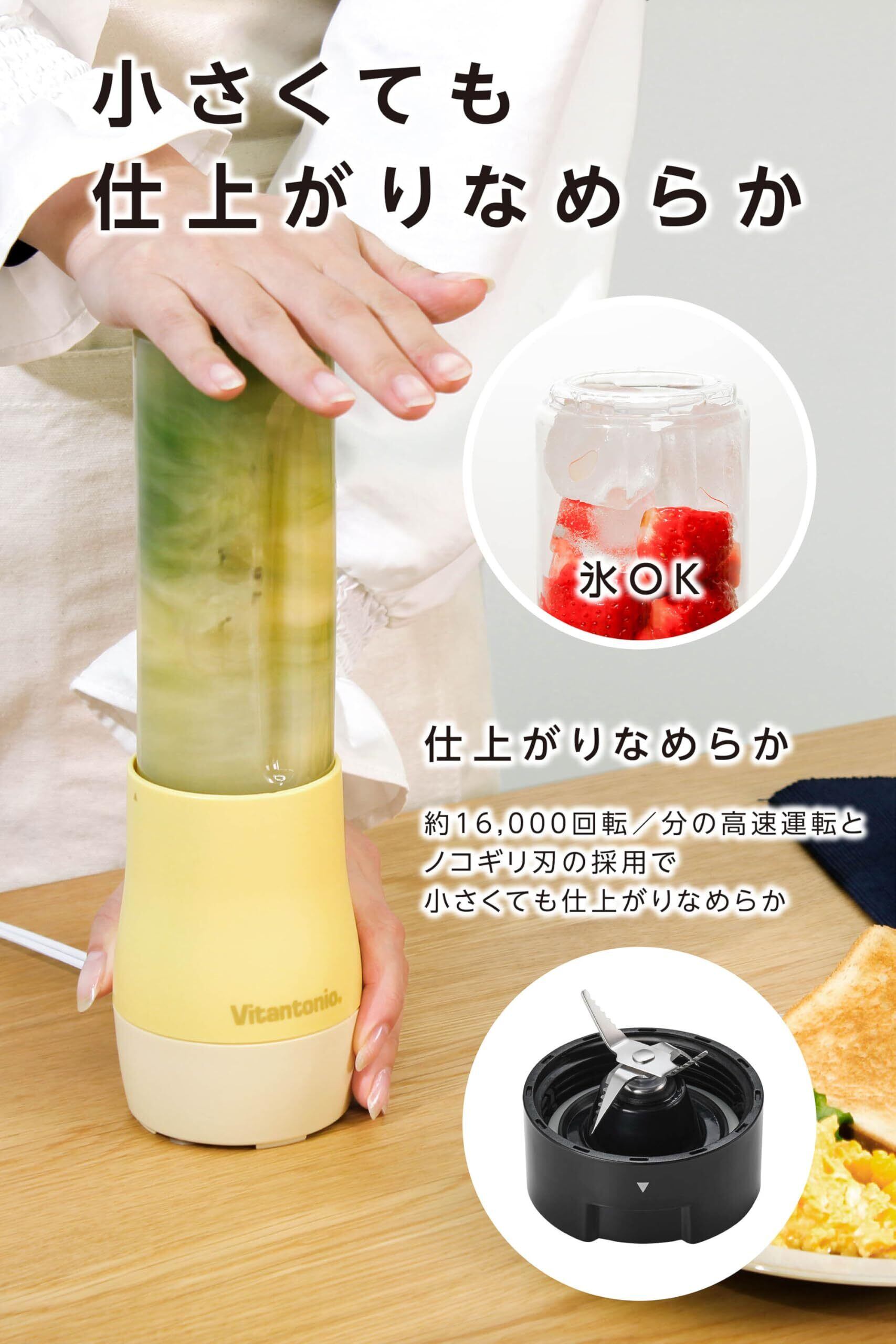 ビタントニオのミニボトルブレンダーは、280mlの飲みきりサイズで、毎日の健康をサポートするスムージーやジュースを手軽に作ることができます。短時間で美味しく栄養たっぷりの飲み物を楽しむことができるので、忙しい朝や仕事の合間にぴったりです。