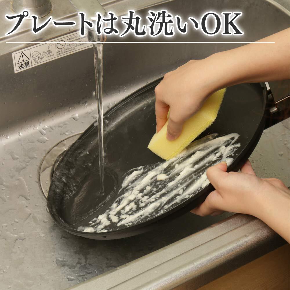 【お手入れ簡単】こびりつきにくく、汚れがスルッと落ちるフッ素プレート。プレートは着脱式で丸洗いOK。重ねて省スペース収納。