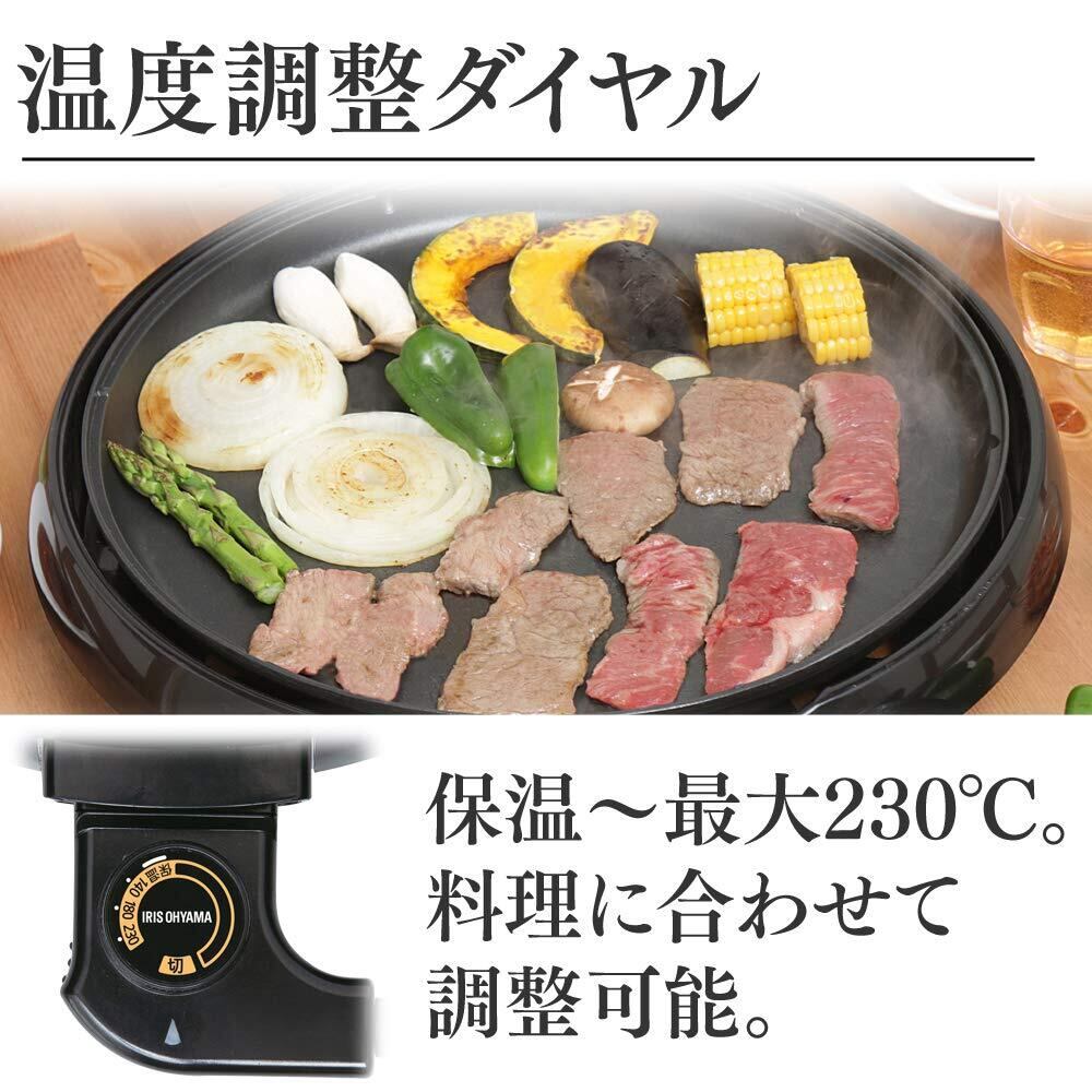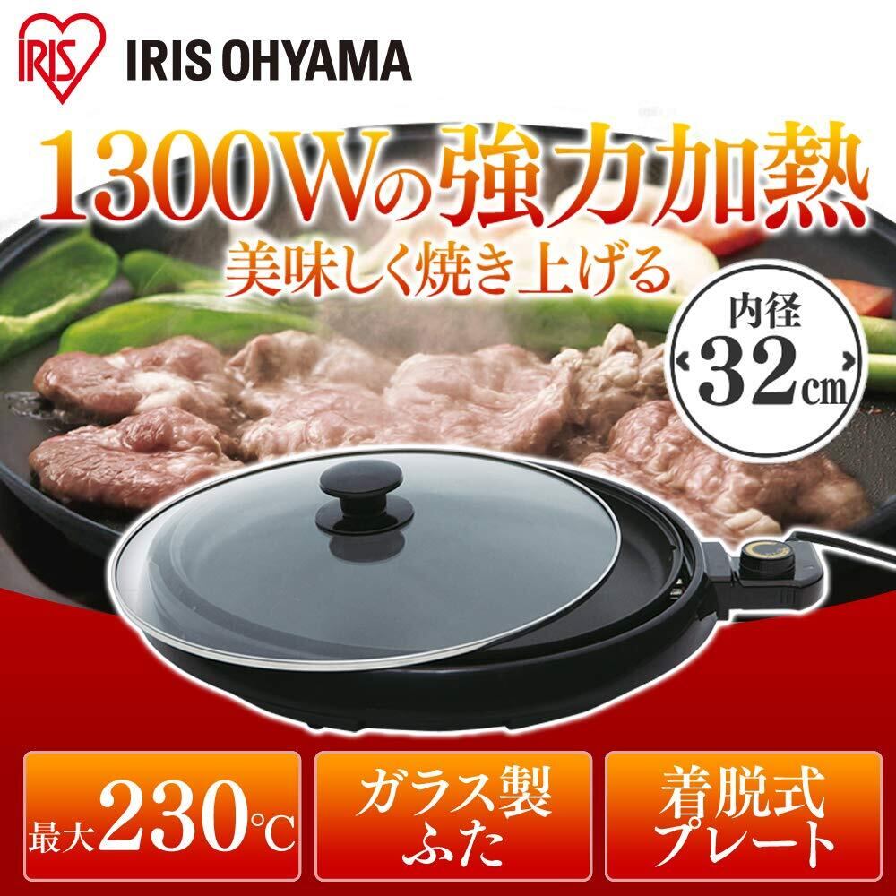 ◆アイリスオーヤマ ホットプレート ガラス 温度調節 着脱式 丸型 IHP-C320-B