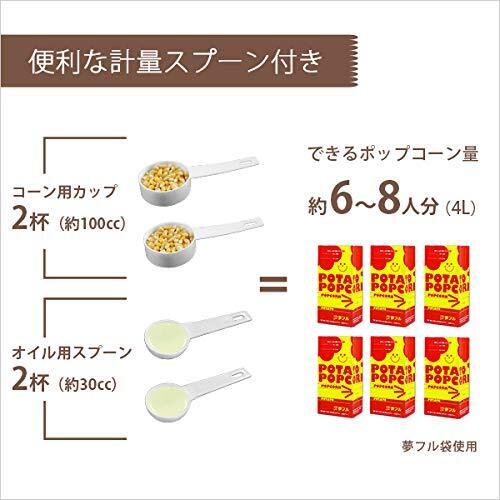 専用の計量スプーン付属。面倒な分量を測る作業がなく、誰でも簡単にポップコーンが作れます。