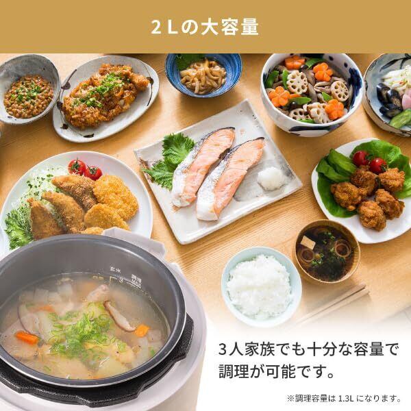 2Lの大容量。3人家族でも十分な容量で調理が可能です。※調理容量は1.3Lになります。