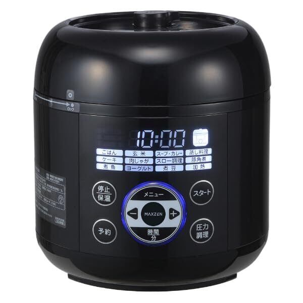 MAXZEN 電気圧力鍋 1.3L 圧力鍋 マクスゼン 電気圧力なべ 炊飯器 3合 蒸し調理 レシピブック付き ヨーグルト ケーキ タイマー 簡単 時短 保温 蒸し料理 コンパクト おしゃれ ブラック 黒 MEPC-TX301-BK