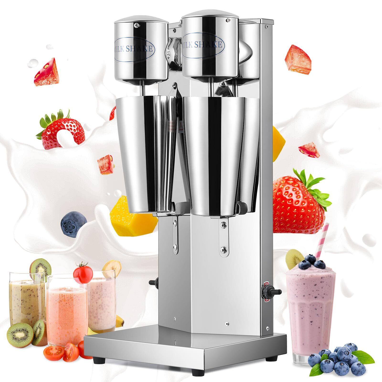 Hanchen 電動シェイクメーカー ミルクセーキメーカー 【ひんやり甘いドリンクを自宅で】 家庭用・業務用 省力化 普通12秒 800mlカップ付き 銅製モーター 低ノイズ ステンレス製 2段階速度制御 ミルクセーキ/シェイク/スムージー/冷製スープ キッチン/喫茶店/レストラン/インターネットカフェ 180w 18000回転/min 日本語説明書付き(110V, ダブルヘッド)