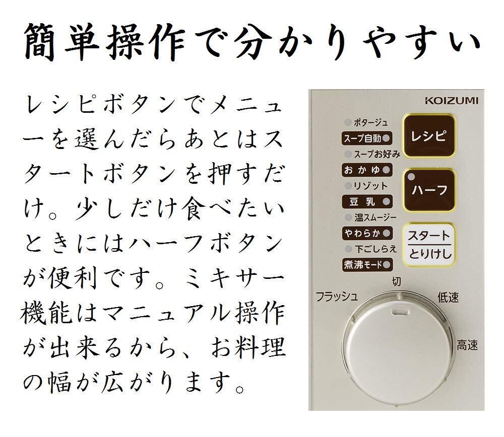 ◆[コイズミ] スープメーカー ゴールド KSM-1020/N | 【手軽に本格スープを楽しむ】 | サイズ:700ml | 多機能設計 | 高品質ステンレス製 | 静音設計 | 自動洗浄機能付き
