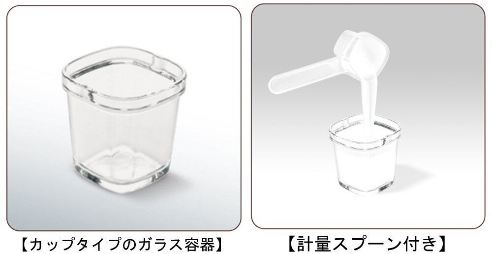 付属のガラス容器、ガラス容器ふた、計量スプーンは食器洗い洗浄機対応なので、後片付けも簡単
