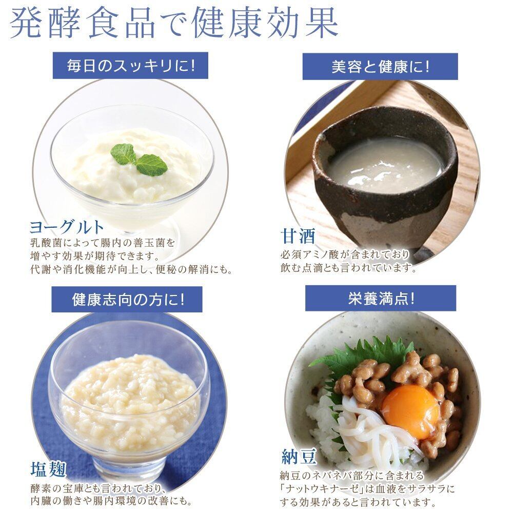 ヨーグルトの種類や発酵食品に合わせて温度と時間を設定できます。