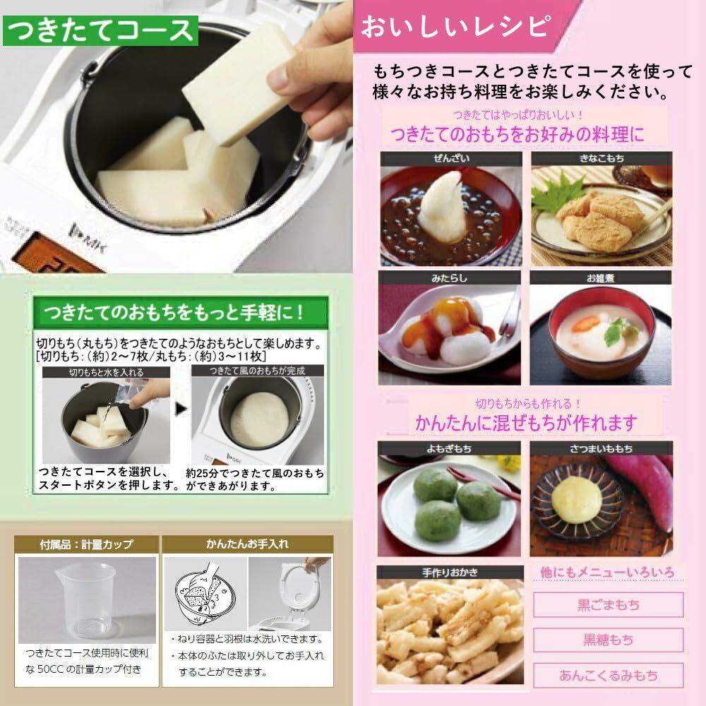 このもちつき機は、煮る、蒸す、つくを一台で行うことができる便利な製品です。最大2合のもち米を使った美味しいお餅を手早くつくることができ、家族や友人との集まりにも大活躍します。簡単に美味しい本格餅が手に入る素晴らしさを実感してみてください!