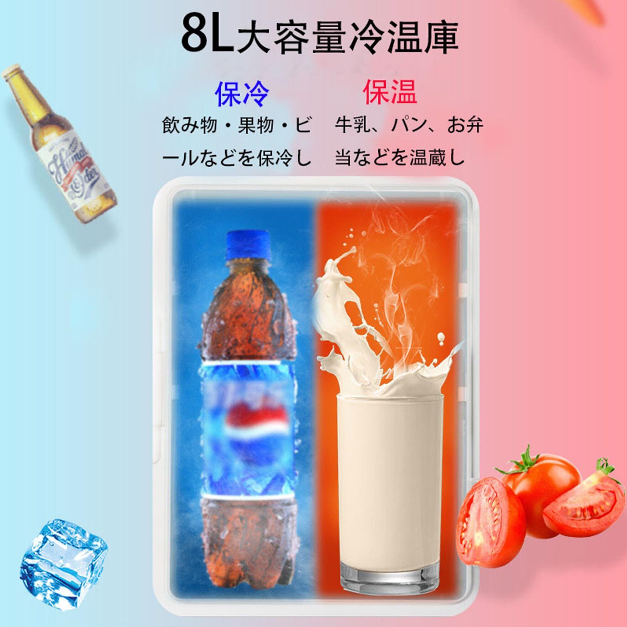 ❄【大容量&軽量】冷蔵庫内容量8Lのスペースで、550MLボトル4本収納、500ML缶5本収納、330ML缶8本収納可能です。また、ドアポケットが付き、マスクやチョコレートなども収納可能です。本体は3.5キロだけで、どこへでも持ち運びやすい、蒸し暑い夏期に出かけてる時冷たい飲み物は簡単に手にいれます。