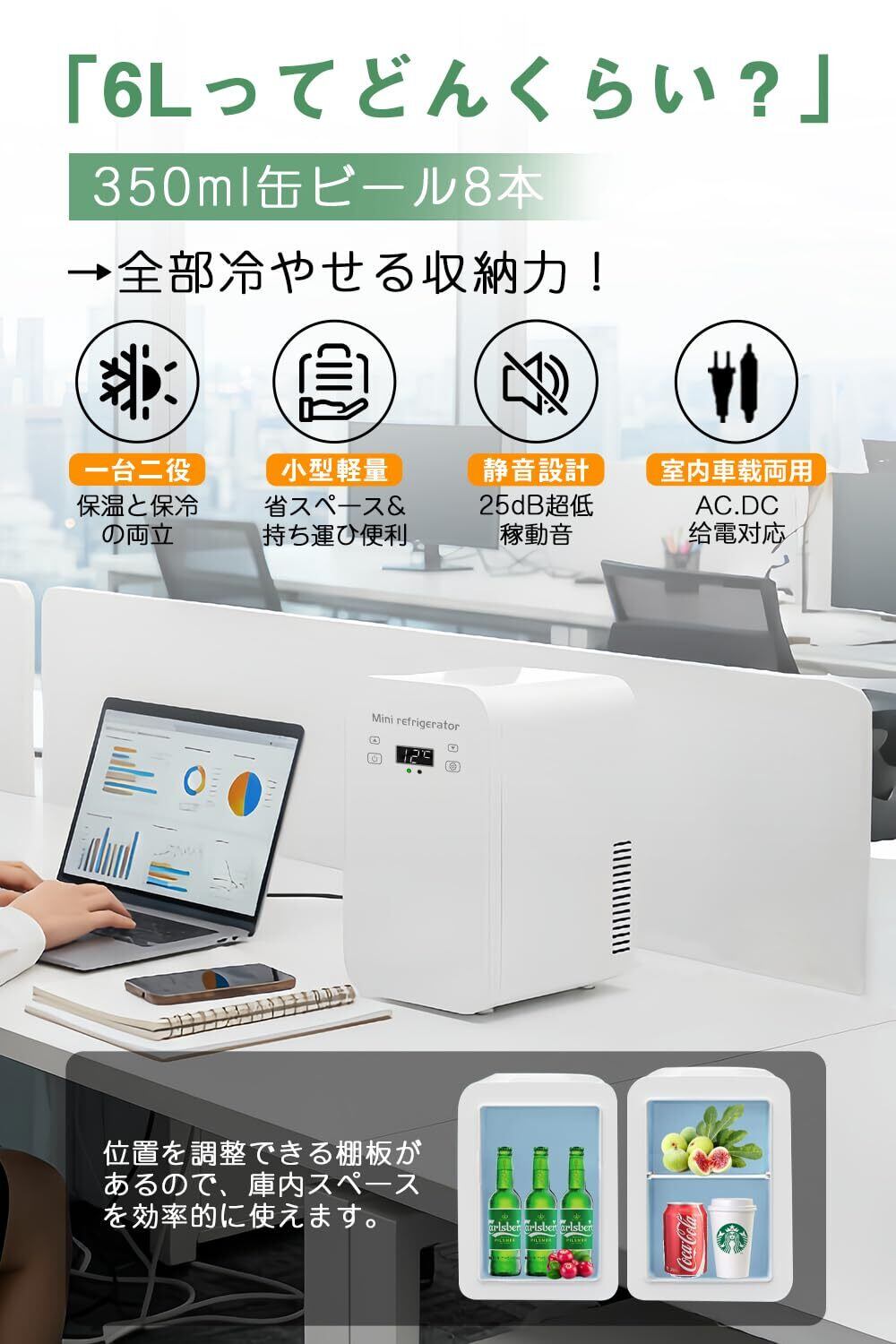 小型冷蔵庫 6L小型 冷温庫 ミニ冷蔵庫 ペルチェ式 温度調節可能 LCD温度表示 0°C~55°C ワンタッチ操作 保温・保冷 ペルチェ搭載 軽量 静音性 ポータブル AC/DC電源 車載 アウトドア 家庭用 PSE認証 (6L, ホワイト)