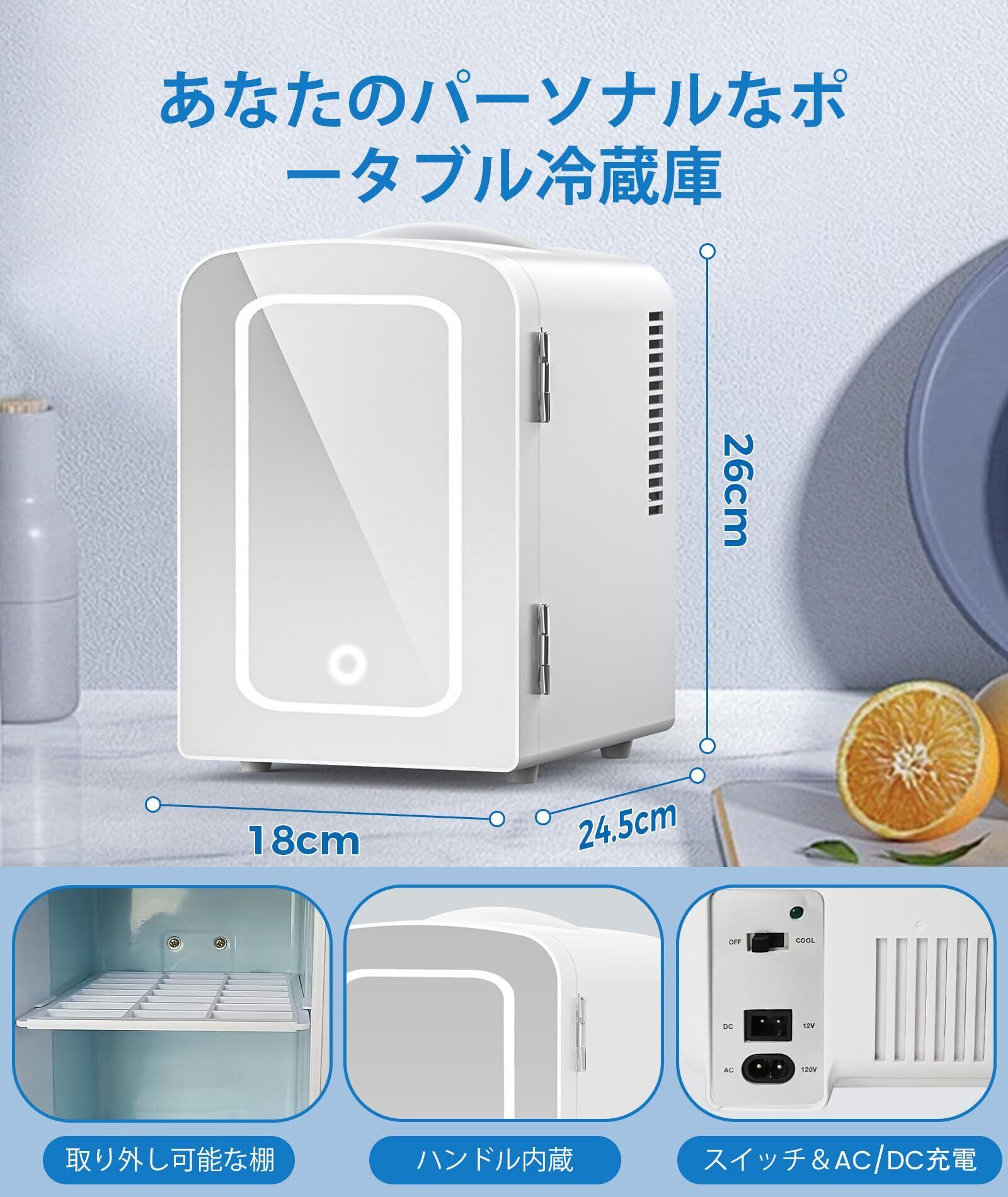 COWSAR ミニ冷蔵庫 冷蔵庫 小型 ポータブル 省エネ 4L 超軽量 おしゃれPSE認証 LEDミラー付き(調光可能)静音 AC/DC両用 12V車載用 給電コード付属 コンパクト ペルチェ式 コスメ用 化粧品用 飲み物保冷庫 寝室用 卓上用 一人暮らし 持ち運び便利