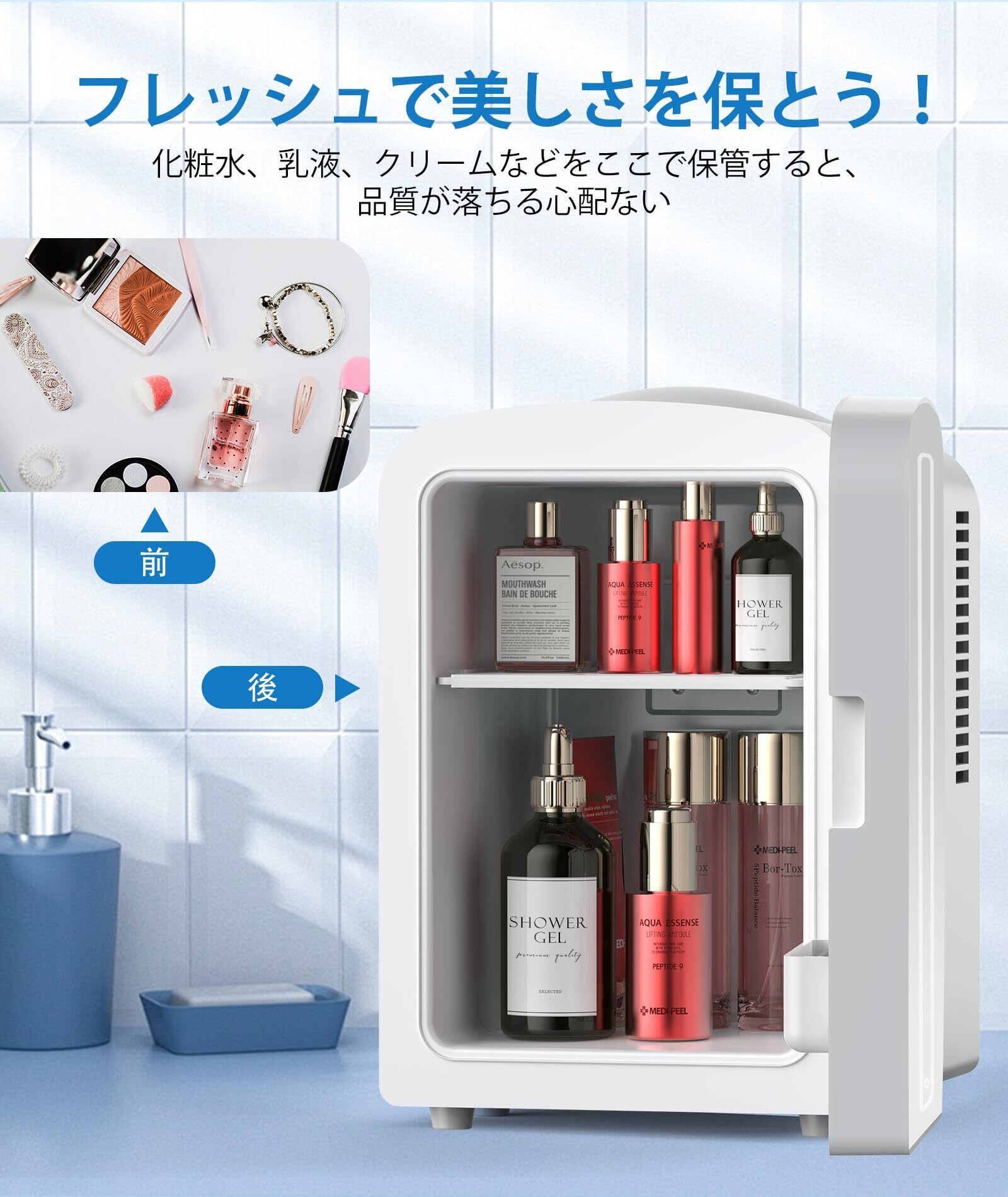 【美を照らすLEDミラーライト&簡単操作】高透明度の鏡面と調光可能なLEDライトを備えています。ワンタッチで素早く点灯、長押しでお好みの明るさに調節可能。スキンケアの時間を、理想の明るさで彩りを添えます。優れた冷却機能で、化粧品や保湿マスクを凍らせる心配なく、有効成分を安全に保鲜。美しさと多機能性を兼ね備えた、理想の保冷庫です。