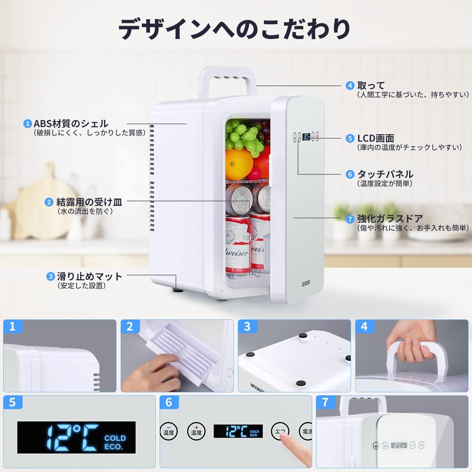 「EENOUR 冷温庫 10L ECOモード ミニ冷蔵庫」は、-2℃から60℃の幅広い温度調整が可能で、保冷だけでなく保温機能も搭載。食材や飲み物を常に最適な温度で保つことができます。