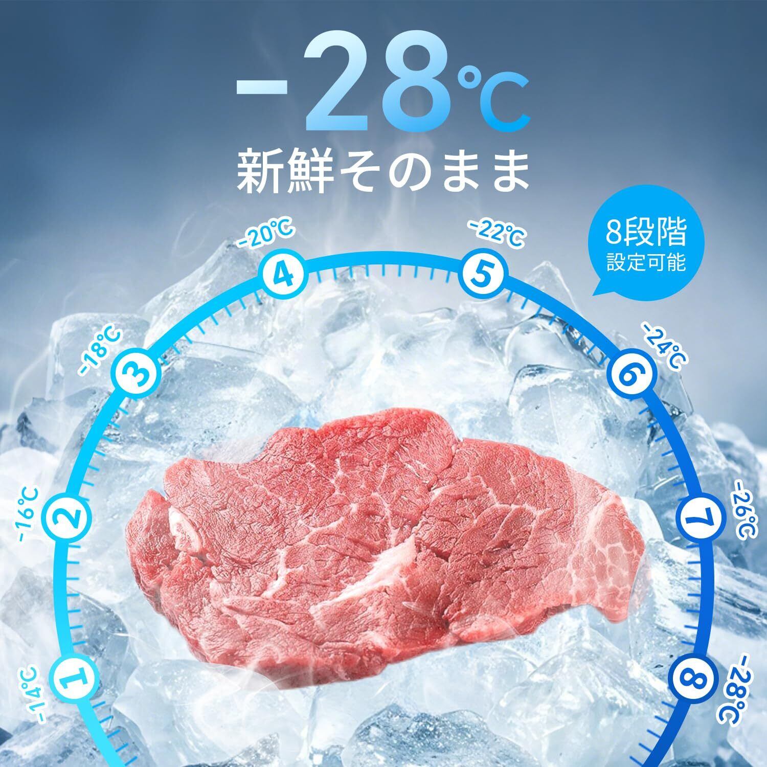 -28℃まで調節できる8段階の温度設定機能を搭載しており、冷凍する食材や用途に応じて最適な温度を選べます。安心して大事な食材を保存できます。