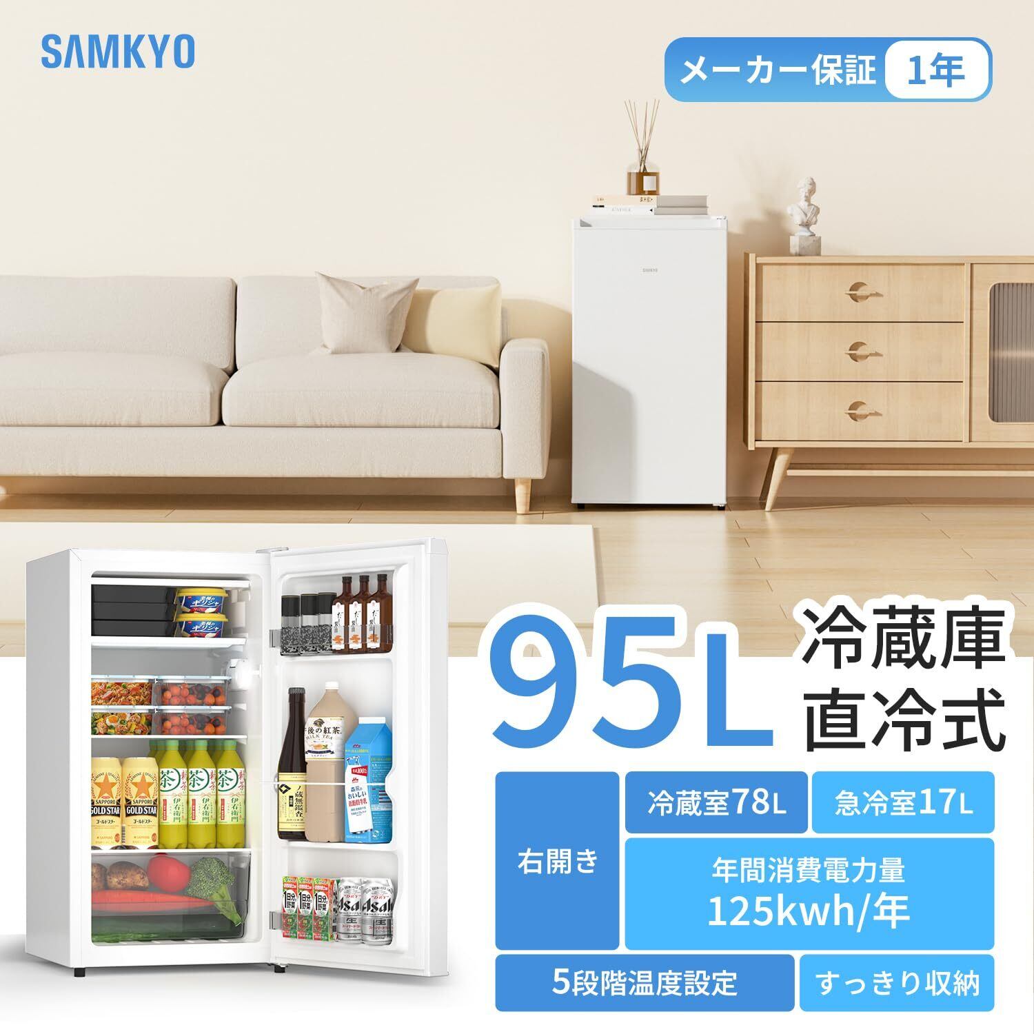 ◆SAMKYO 冷蔵庫 一人暮らし用 95L | 【シンプルで使いやすいスリム冷蔵庫!】 | 静音設計で生活空間を快適に保つ!