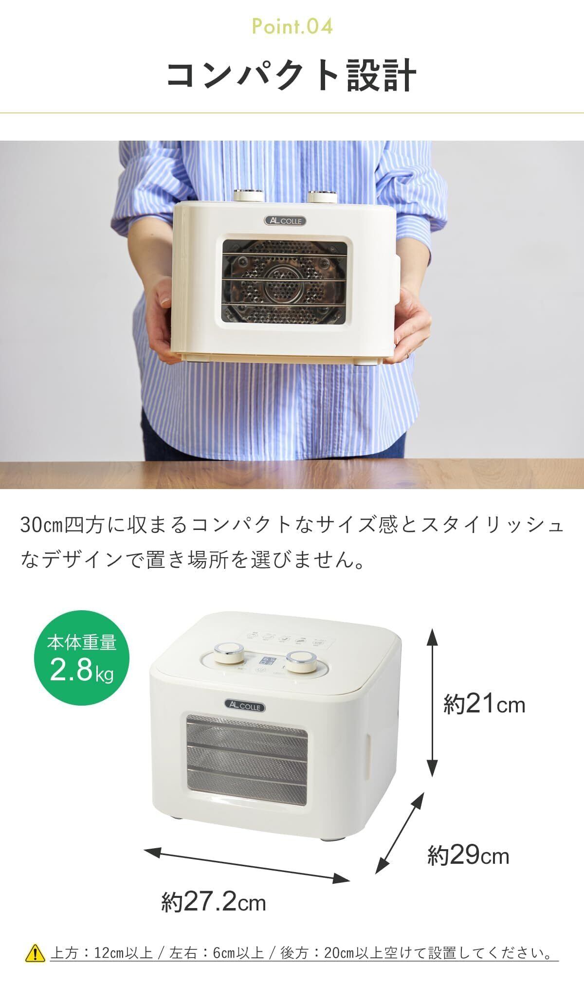 ◆AL COLLE(アルコレ) ドライフードメーカー ADMT400W | 【ヘルシーで美味しい無添加おやつを手軽に!】 | 4段式、低温35℃から高温80℃まで調整可能なフードドライヤー!