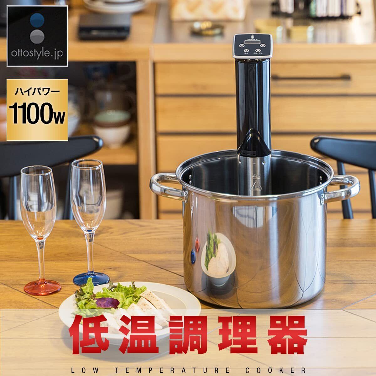 ottostyle.jp 低温調理器 IPX7 防水 家庭用 手軽 簡単 タッチパネル タイマー機能 アラーム付 25度~90度 温度設定 親切設計 1100W ハイパワー 3つの位置で固定可能 スリム スロークッカー 真空調理機