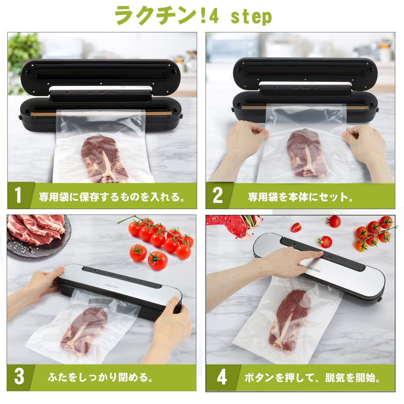 ◆【2024年モデル】真空パック機 吸収力60kPa | 【コンパクト&軽量で手軽に真空保存!】 | ご家庭から業務用まで幅広く活躍!
