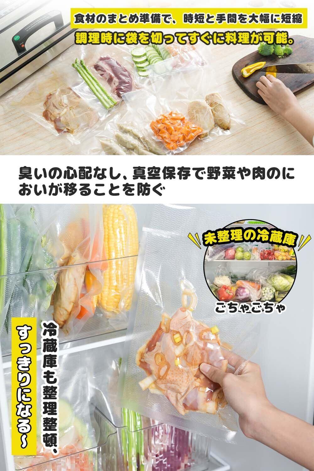 【鮮度長持ち・食材ロス削減】真空パック袋の中の空気を取り除くことによって食品の酸化、雑菌の増殖を抑え、食品の鮮度が長持ち可能で、匂い移りもなく、食品保存に最適、食材ロス削減・コスト効率化を実現でます。※食品を保存する際は、真空パックした後、冷蔵庫や冷凍庫にご保存する必要があります。【アフターサービス・安心購入】商品の管理に最善を尽くしておりますが、お届けした商品について疑問がありましたら、お気軽に弊店までご連絡いただけますようにお願いします。