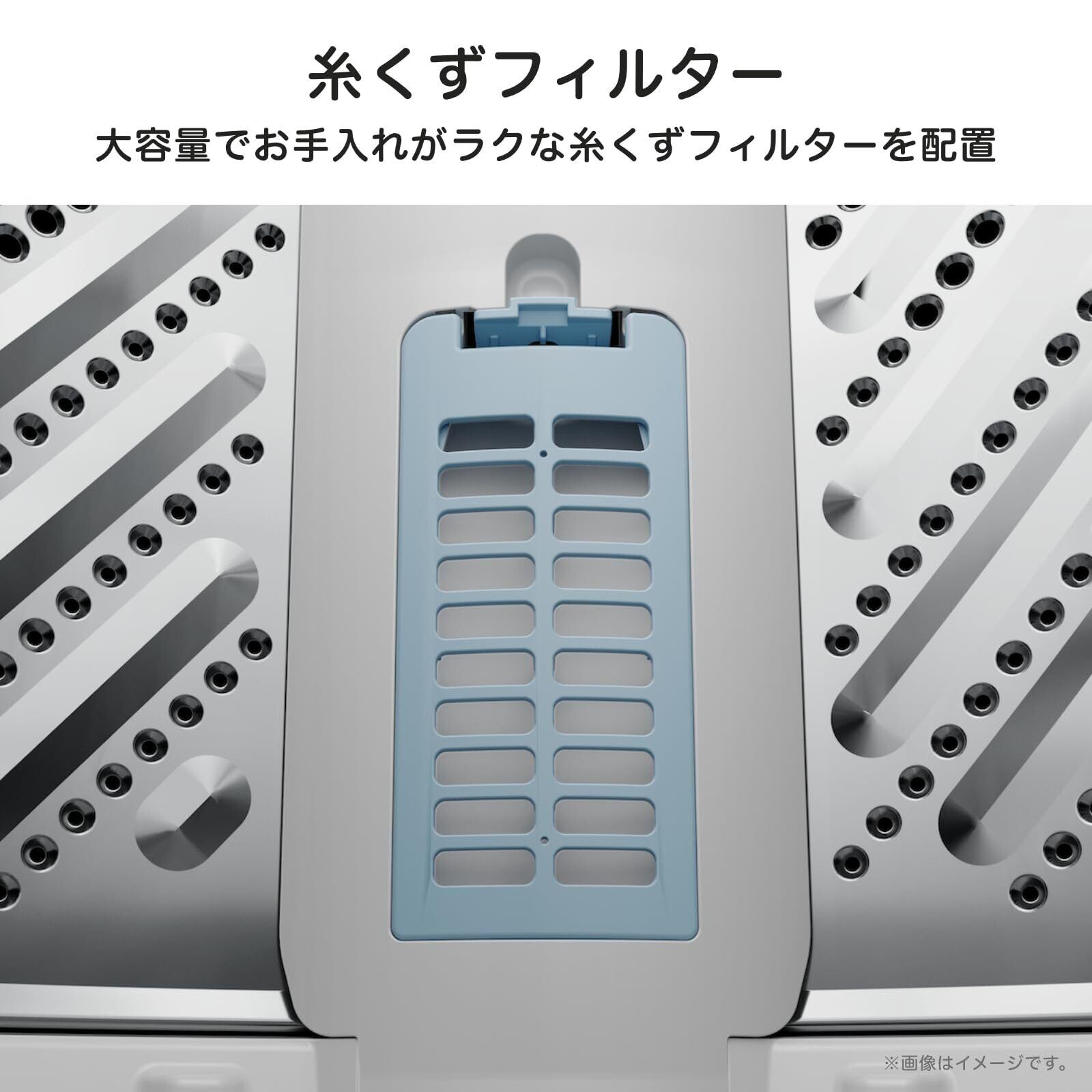 ステンレス槽:洗濯板の凹凸設計を採用することで洗浄力をアップしつつステンレス素材で清潔感を保ちます。