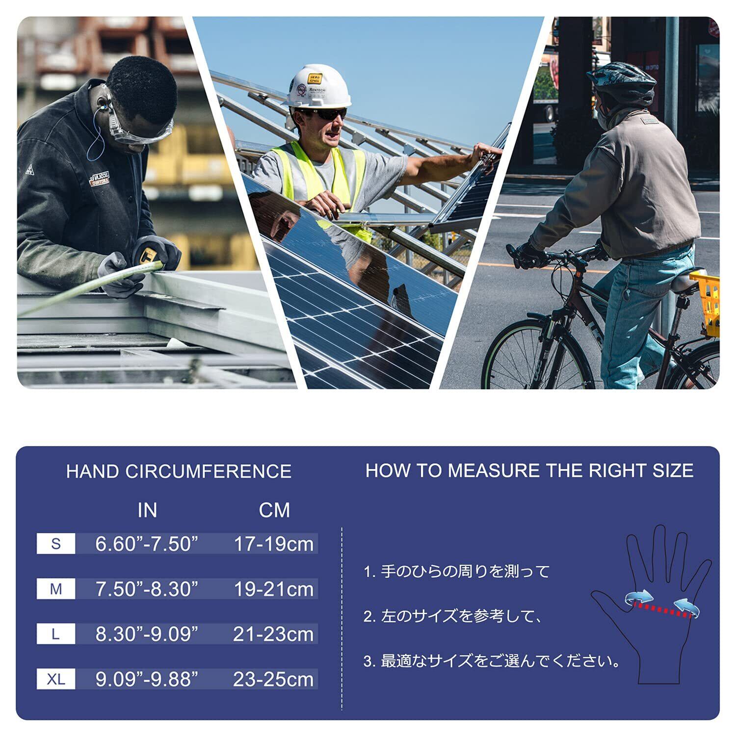 『滑り止めデザインと反射図案』手のひらと指に十分なシリコン粒子を装備し、グリップ力と耐摩耗性を効果的に向上させています。 物を掴む際にしっかりホールドできます、アウトドア、スポーツから日常まで、冬や春先のハイキング、トレッキング、サイクリングなどにいいかけ心地を実現しています。手の甲に反射図案付き、光を反射でき、夜間走行の安全性を高めます。