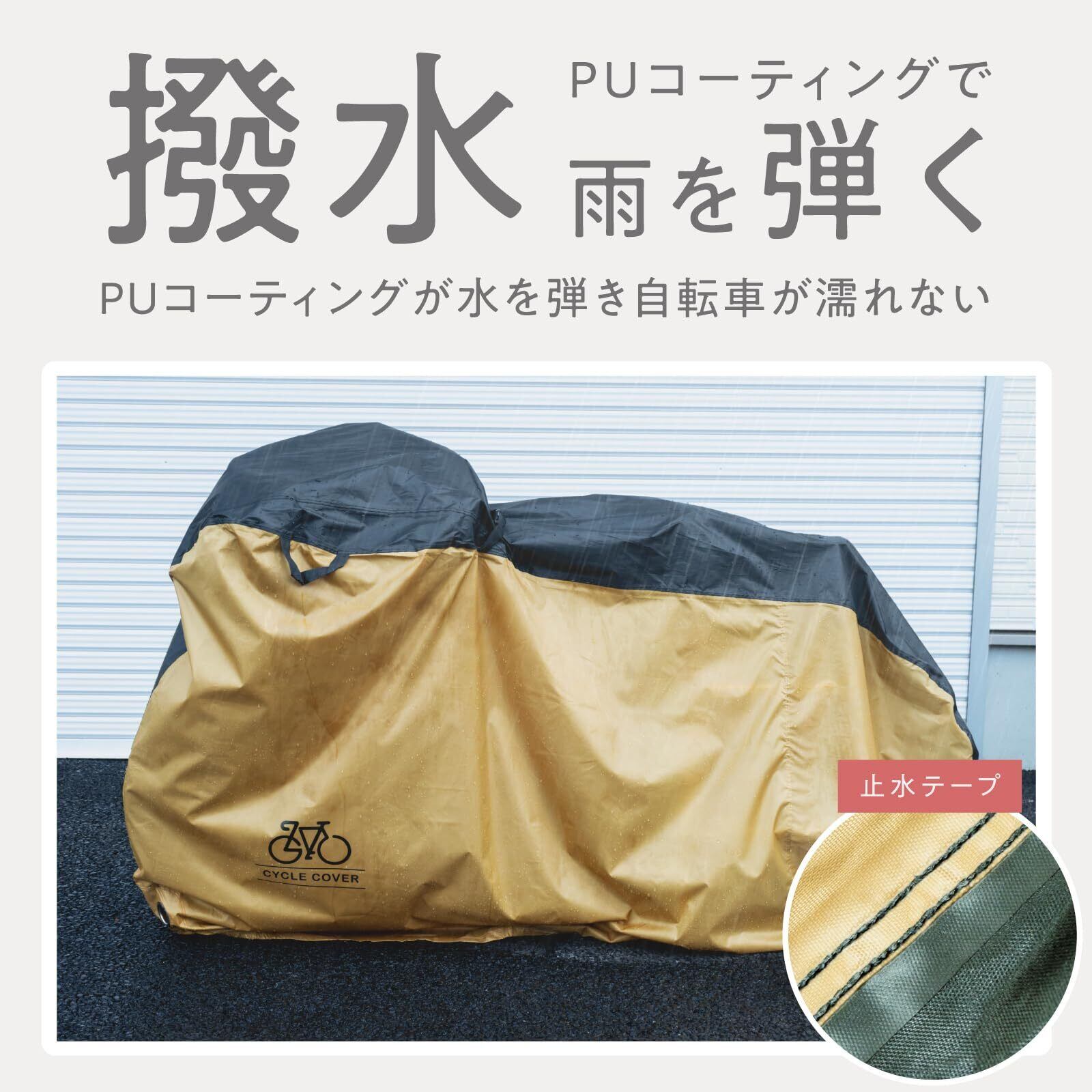 【丈夫で防水性、耐久性に優れたUVカット生地】【厚手の生地仕様】210Dオックスフォード生地を使用しているので丈夫で耐久性に優れています。【撥水加工PUコーティング / 防水テープ】撥水加工PUコーティングと縫い目の防水テープにより防水性能アップ!あなたの大切な自転車を雨風から守ります。【UVカット加工+シルバーコーティング】紫外線による劣化を防ぐUVカット加工+シルバーコーティングで紫外線から大切な自転車を守ります。
