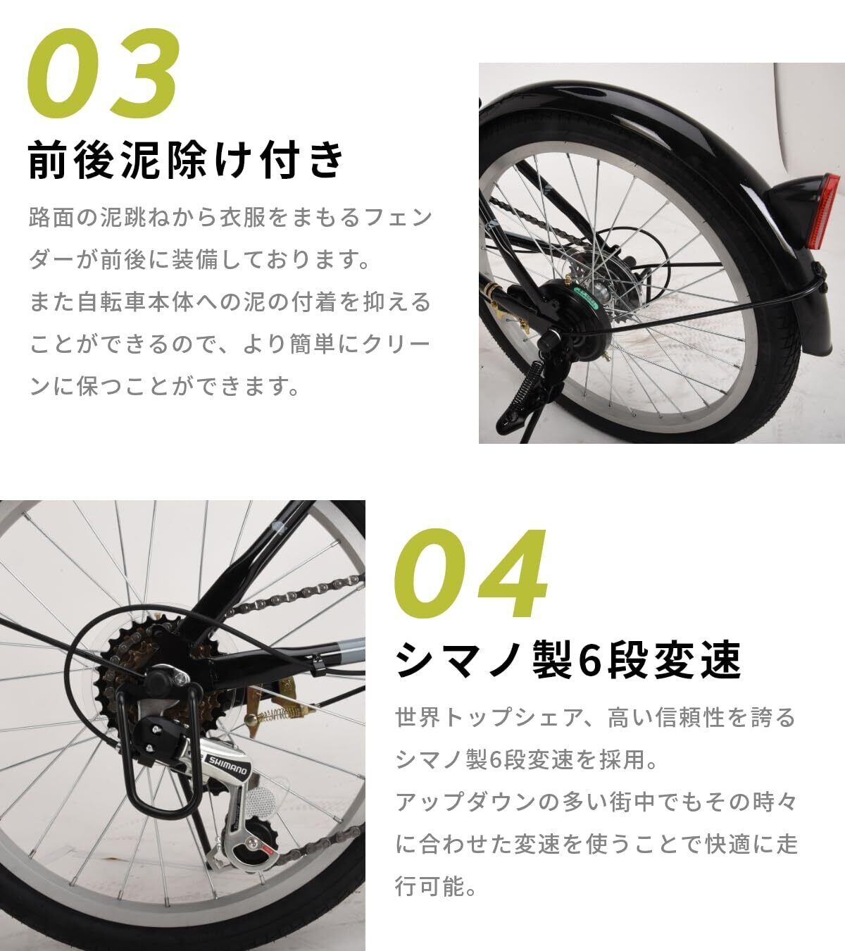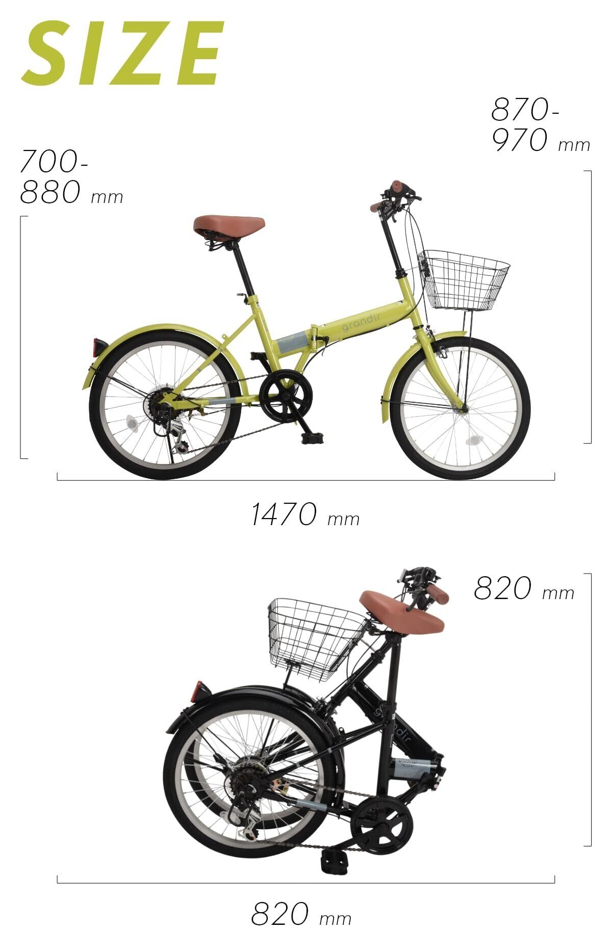 グランディール(Grandir) ノーパンク 折りたたみ自転車 GR-206N 20インチ シマノ6段変速 前カゴ 泥除け付き ブラック・ホワイト・グリーン