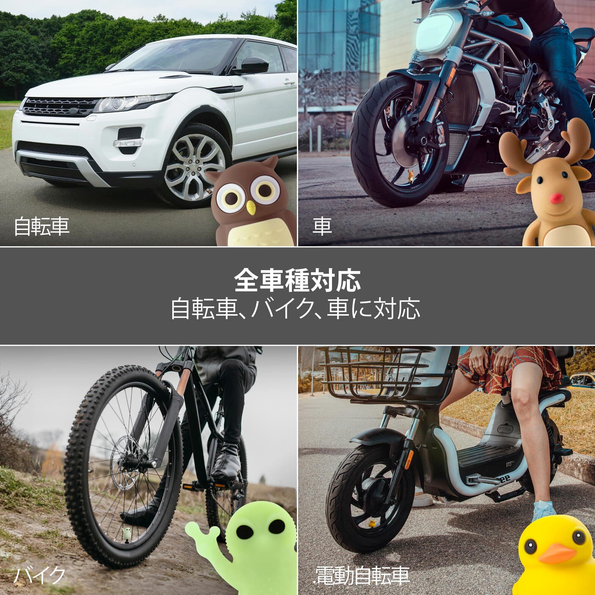 【簡単に取り付け】余計な工具や面倒な手順は不要、簡単に取り付けるだけで使用でき、キャラクターがエアバルブをしっかりと保護します。非常に簡単で便利です。(出発前には正しく取り付けられていることを確認してください)