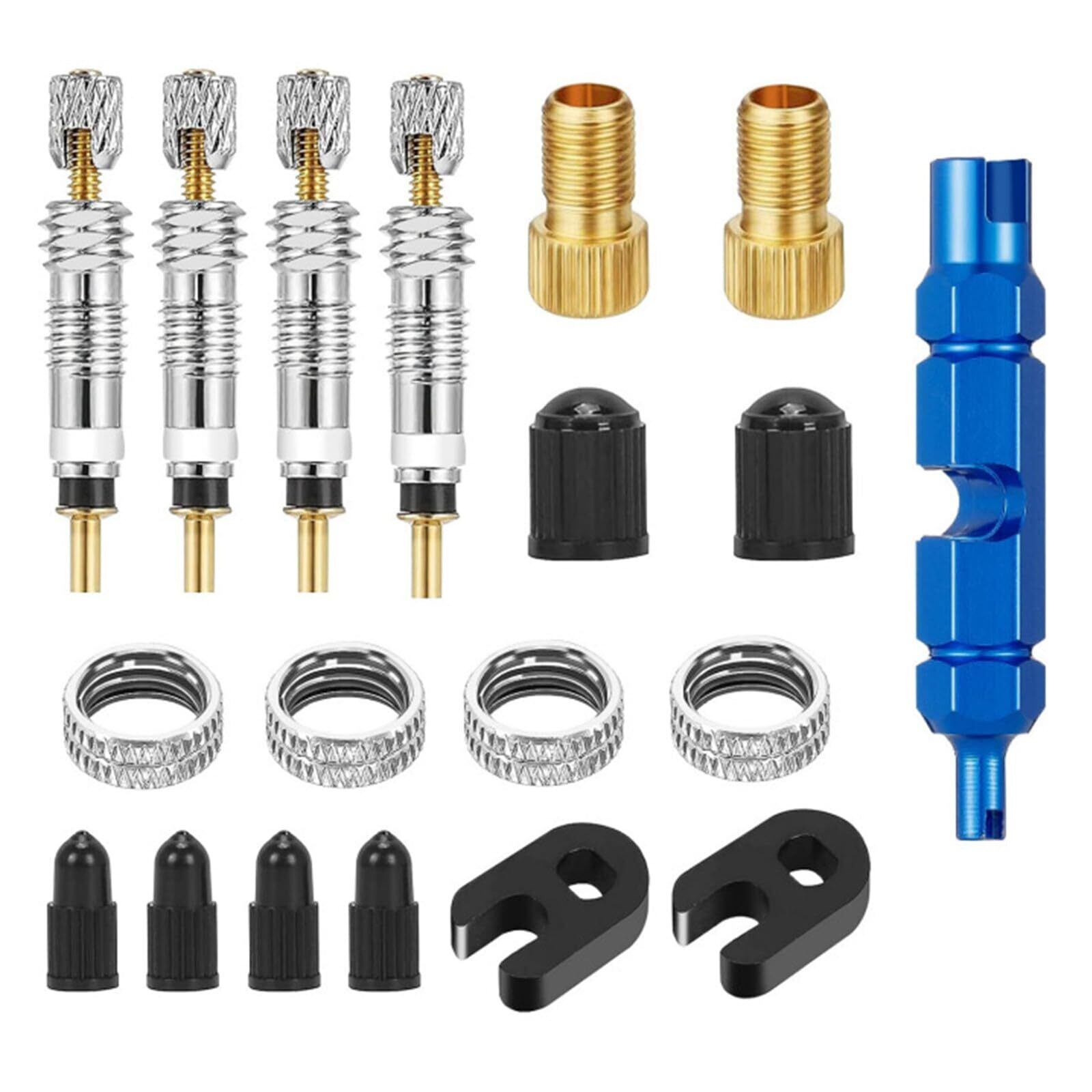 仏式バルブコア 自転車 バルブ フレンチバルブ コア 変換 アダプター 自転車 ロードバイク タイヤ エアバルブ 交換 工具 レンチツール キット (19個セット)