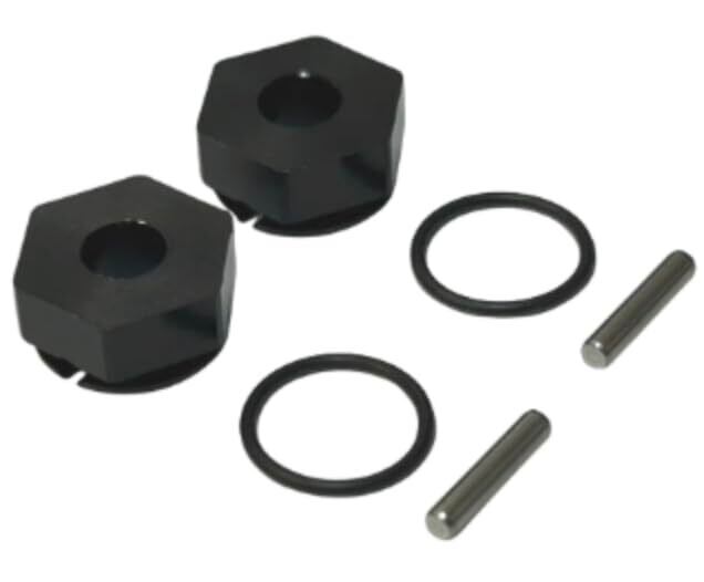 ピンの抜け防止構造を備えたアルミ製六角ハブです。六角ハブをアクスルシャフトに取付後、付属のOリングでピンを止めるだけの簡単構造!!【2個入】