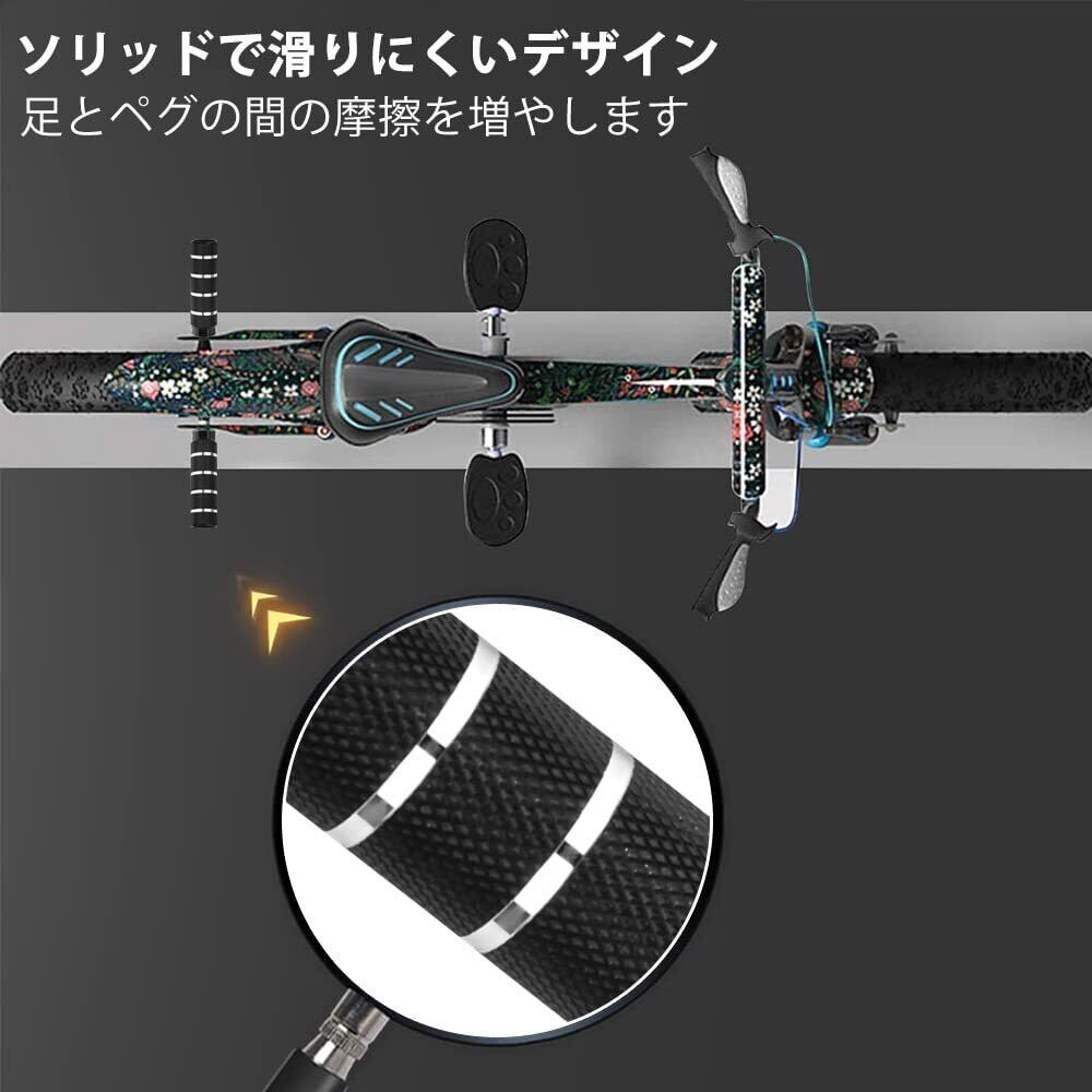 【滑り止めデザイン】:自転車ペグの表面には、間隔を空けて固い滑り止めストリップがはめ込まれています。ダイアモンド型ツイル滑り止めデザイン、摩擦を増やして安全を確保します。誤って脱落する心配はありません。