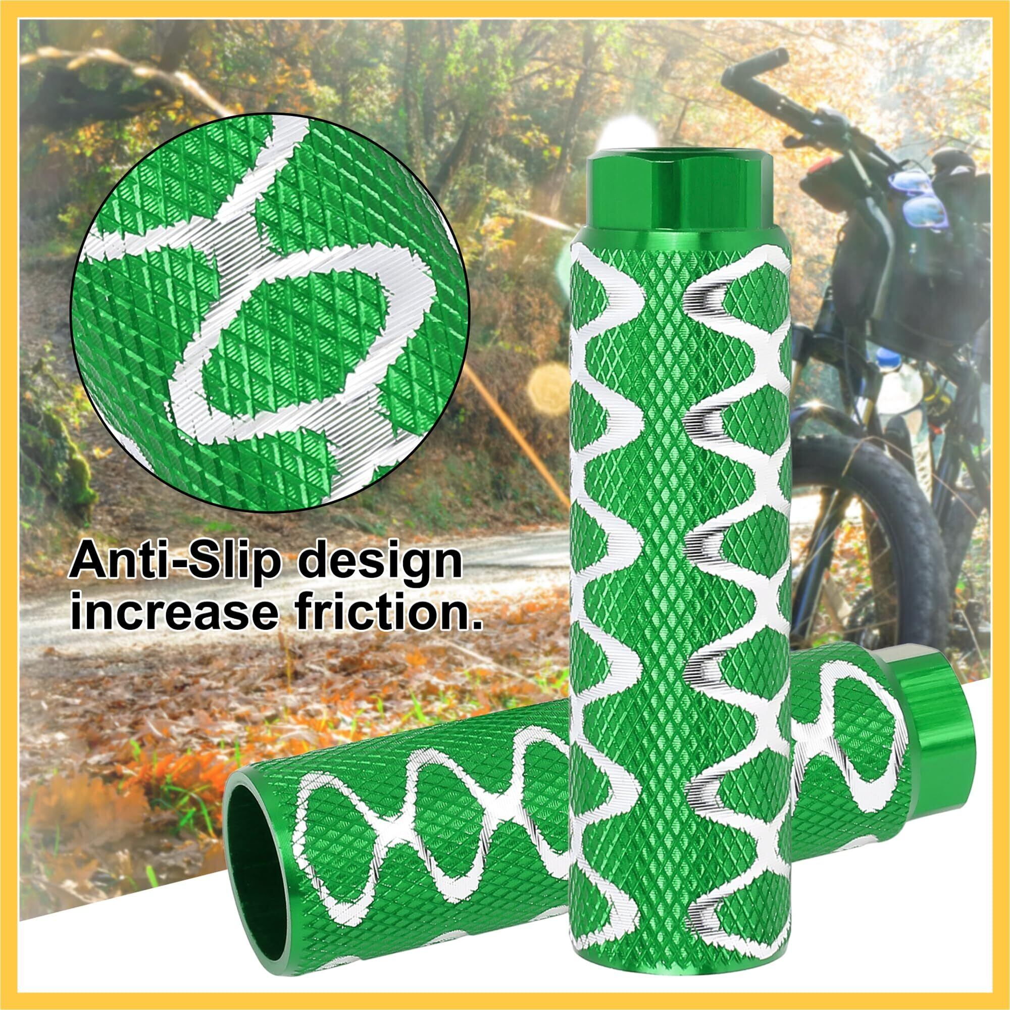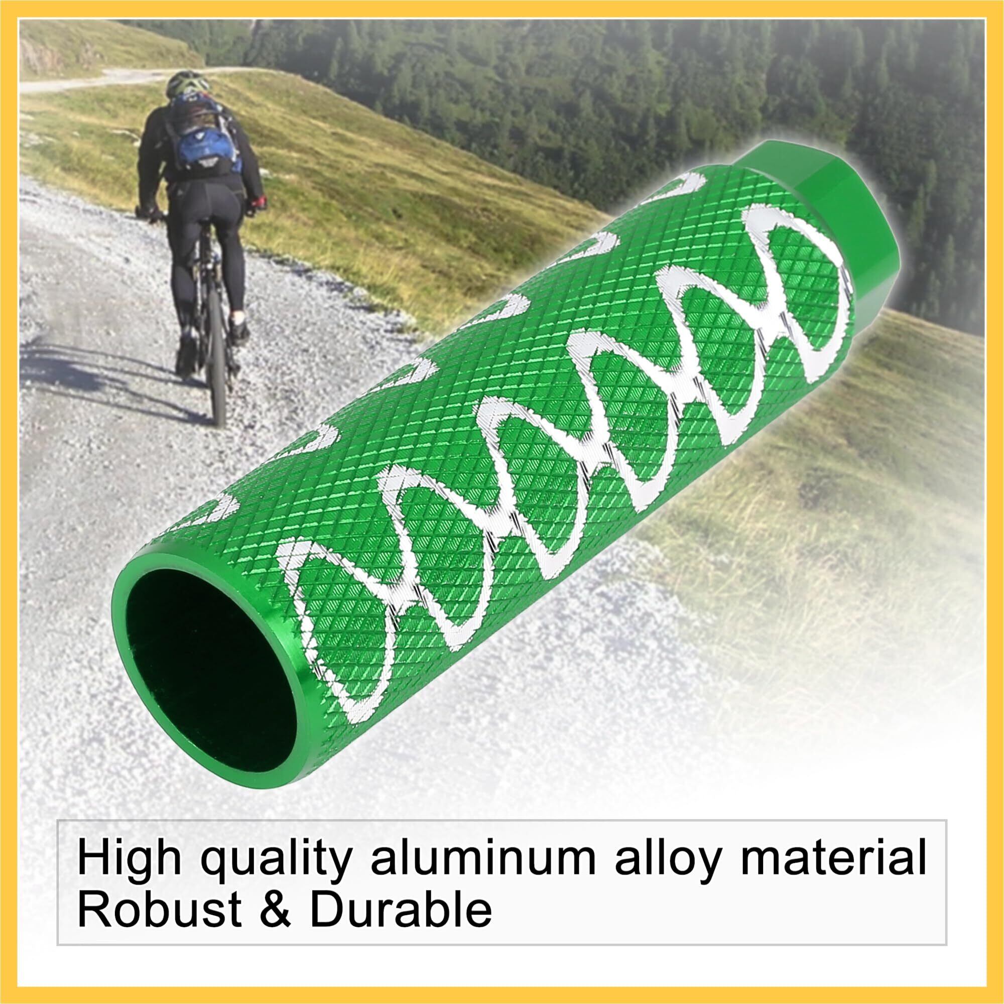 アルミ合金製ラウンドウェーブストライプスアクスルリアフットペグフットレストBMX MTBバイク自転車適合3/8インチ100x28mm緑