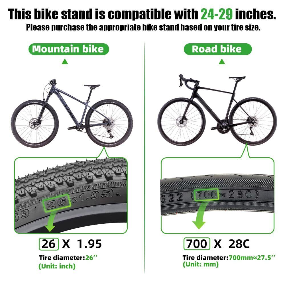 【幅広い互換性】RBRL自転車 スタンド、直径24~29インチの自転車タイヤに適しており、バイクマウントは円形フレームではなく、長方形または楕円形のチューブに適合します。ご購入前にサイズをご確認ください。
