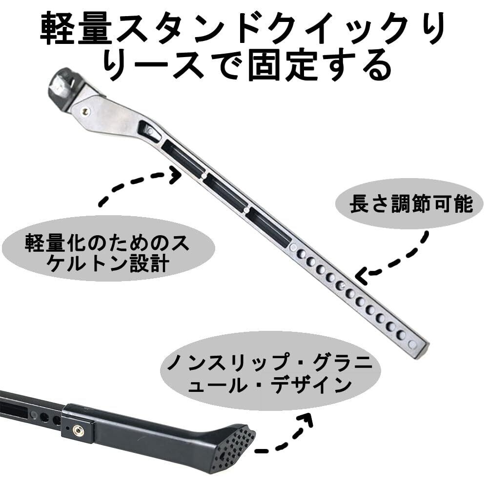 自転車キックスタンド 自転車用スタンド バイクサイドスタンド 34~40cm長さ調節可能 超軽量 アルミニウム合金製 簡単取り付け ライトシングルレッグ マウンテンバイク クロスバイク ブラック
