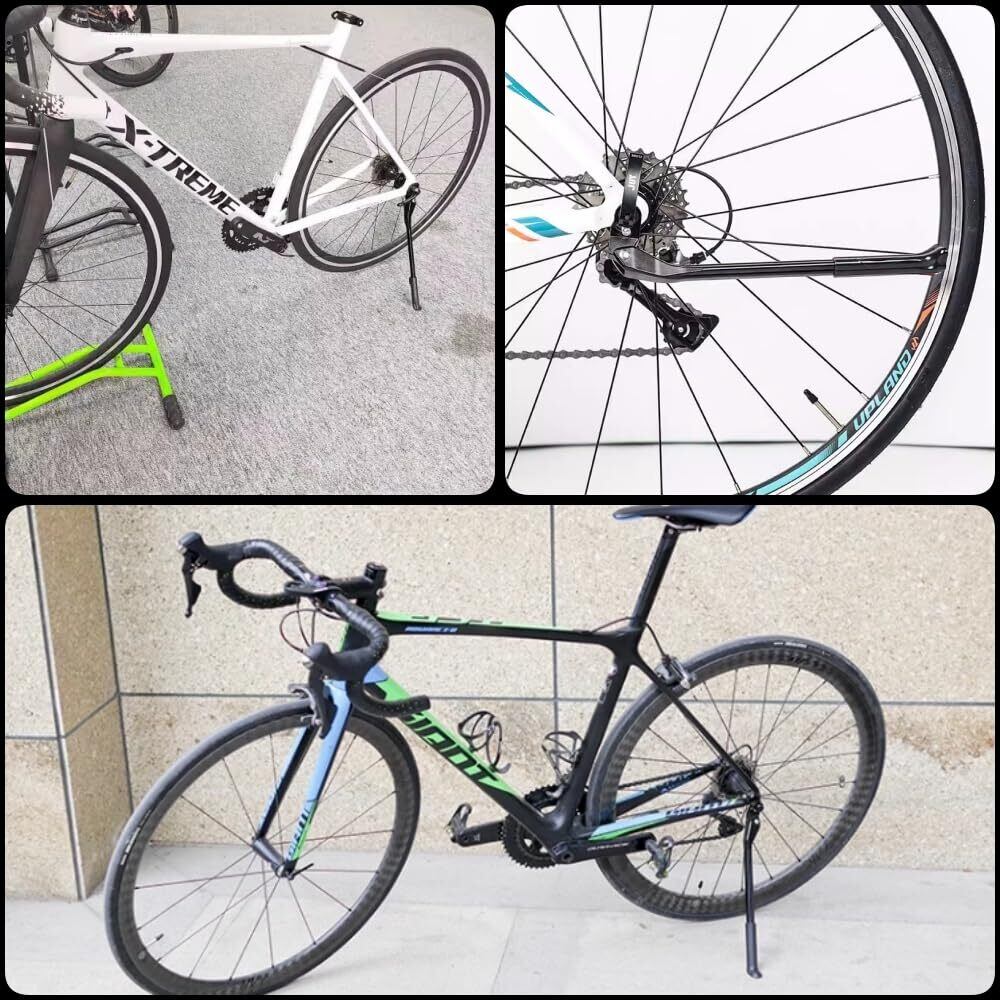 【高品質素材】自転車スタンドは高品質なアルミニウム合金で作られ、隠し式のスプリングロックが付いています。また、防水性、耐摩耗性、耐食性を備え、頑丈で耐久性があり、長期間使用できます。