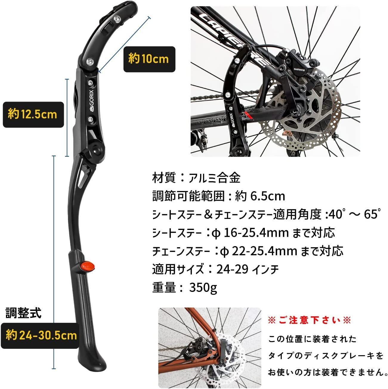GORIX(ゴリックス)自転車キックスタンド サイドスタンド 安定 スタンド (GX-ST106) 24-29インチ対応 700c 自転車スタンド 車体取付スタンド 軽量 [ロードバイク・クロスバイク・マウンテンバイク対応]