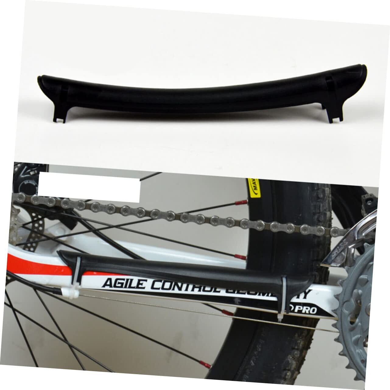 チェーンプロテクション効果:ラバーケアチェーンポストリアフォークプロテクターは自転車のチェーンステーに貼付し、チェーンとフレームの接触による摩耗や衝撃を軽減することでフレームを保護します。