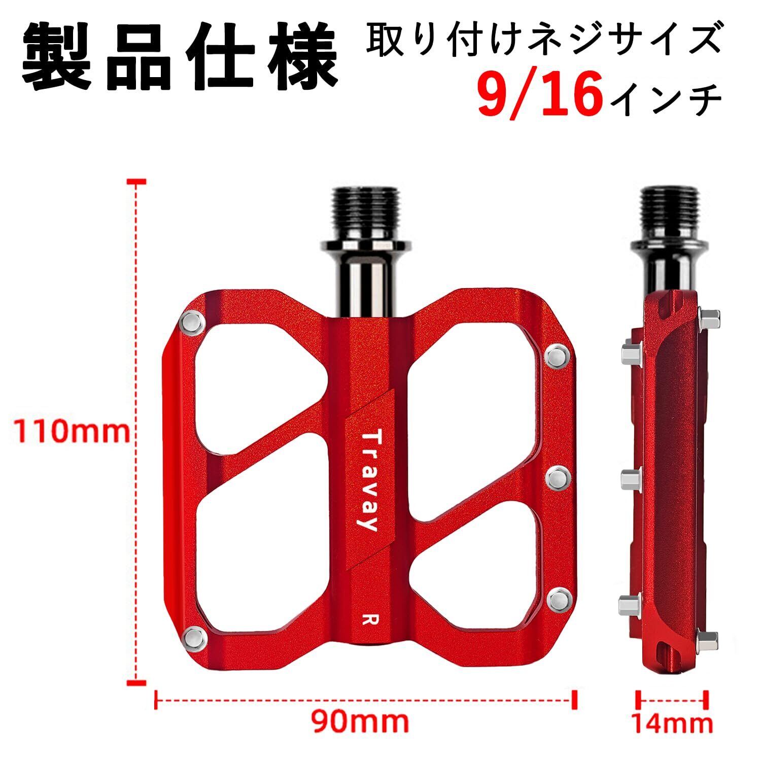 【Travay】自転車ペダル フラットペダル 超軽量 滑り止め ベアリングシール チロードバイク/クロスバイク/mtb/シティーサイクル各種自転車交換可能 9/16イン(2個セット)