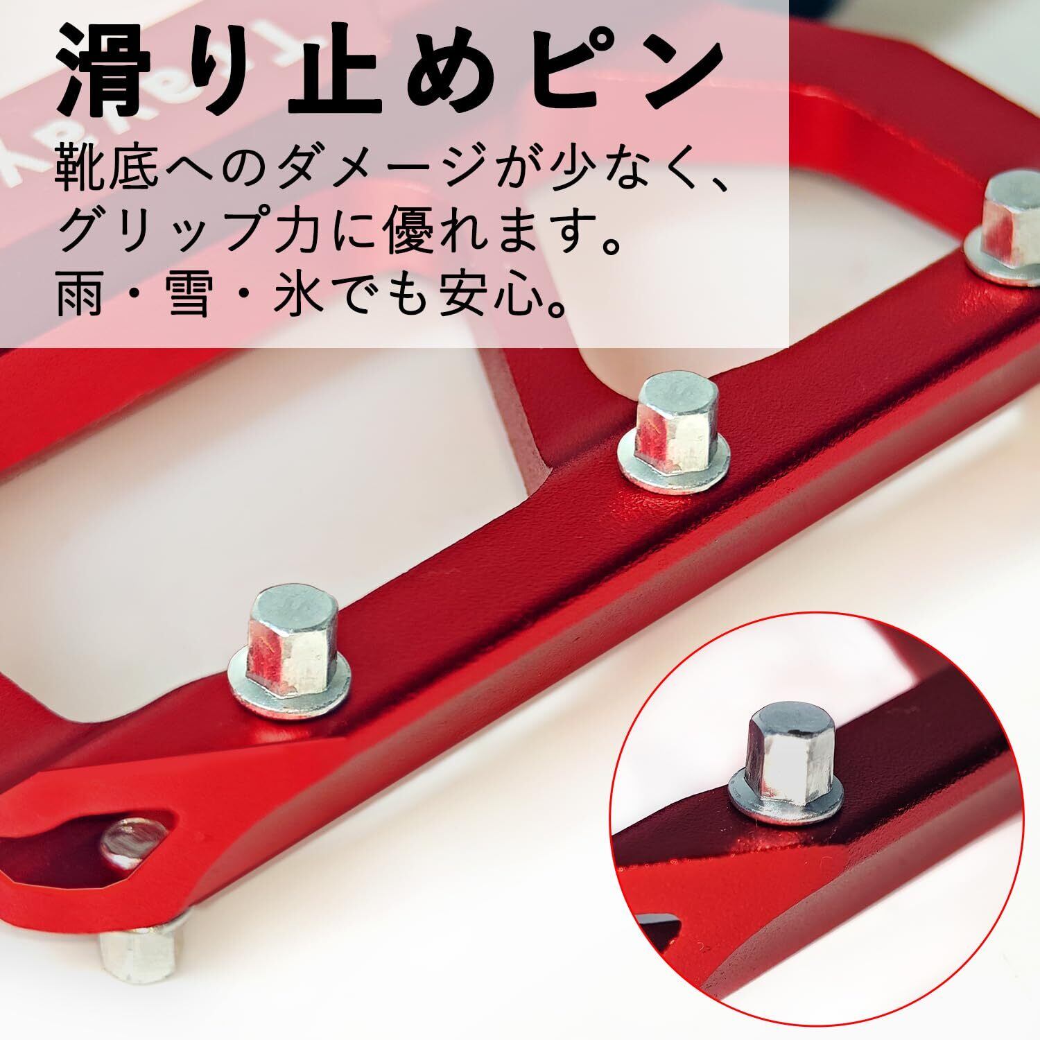 【滑り止め】ペダルは両側がアンチスキッドネイルを備えます。雨の日や凹凸のある道路に安全に乗ることができます。漕ぎ出しや力の逃げを防ぐため、効率的なペダリングが可能です。
