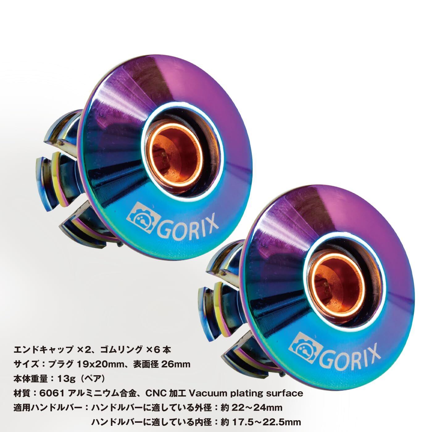 GORIX(ゴリックス)エンドキャップ ロードバイク 自転車 ねじ式 固定タイプ CNC バーエンドキャップ オイルスリック 虹色 バーエンドプラグ (GX-ZZCAP) おしゃれ 超軽量 グリップ・バーテープキャップ カスタマイズ カスタム ハンドルキャップ