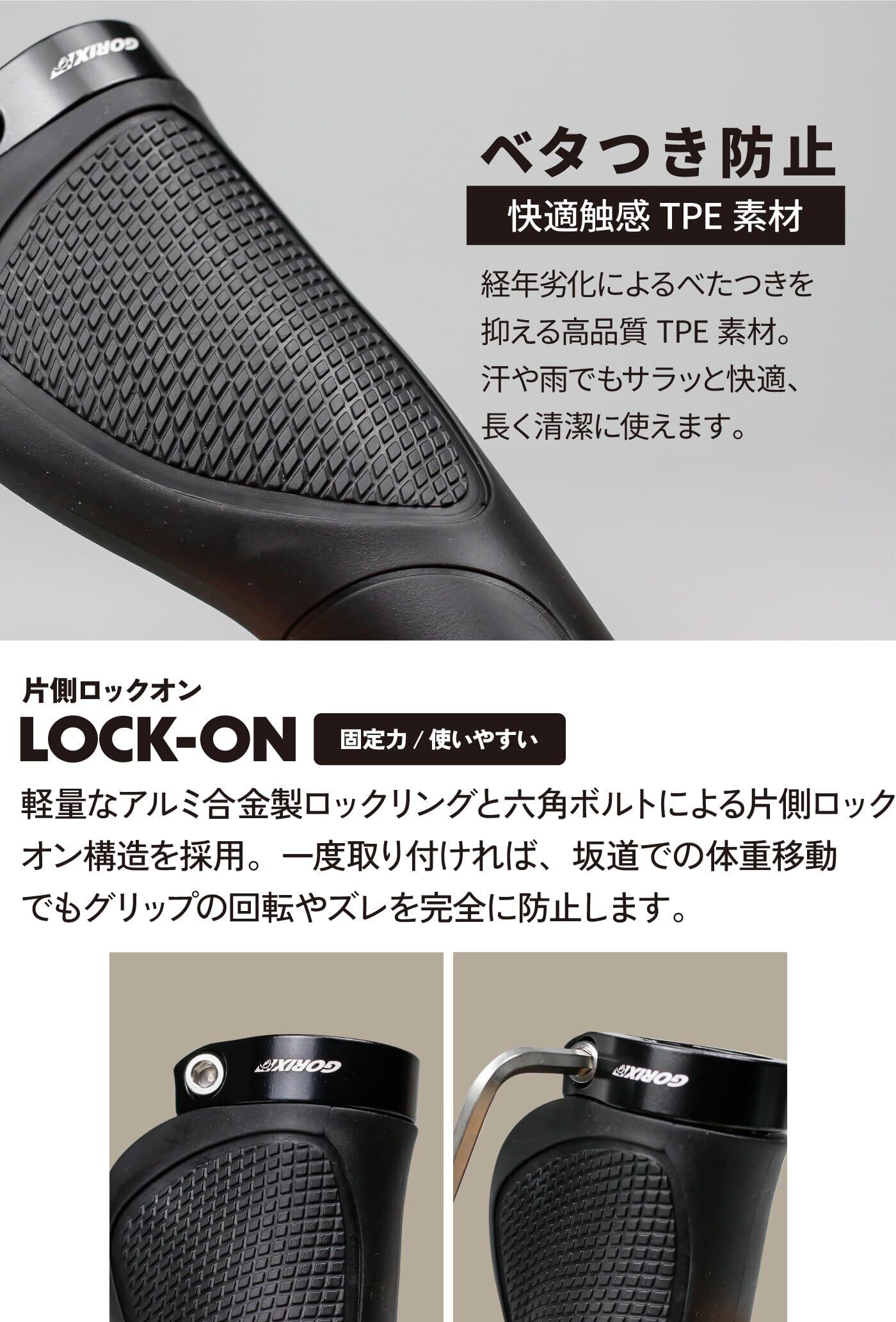 GORIX(ゴリックス)自転車 グリップ エルゴグリップ TPE ロックオン 1【ロング133mm/ショート92mm】クロスバイク 疲労軽減 べたつかない 長距離ツーリング mtb ハンドルグリップ(GQZ-COMF)