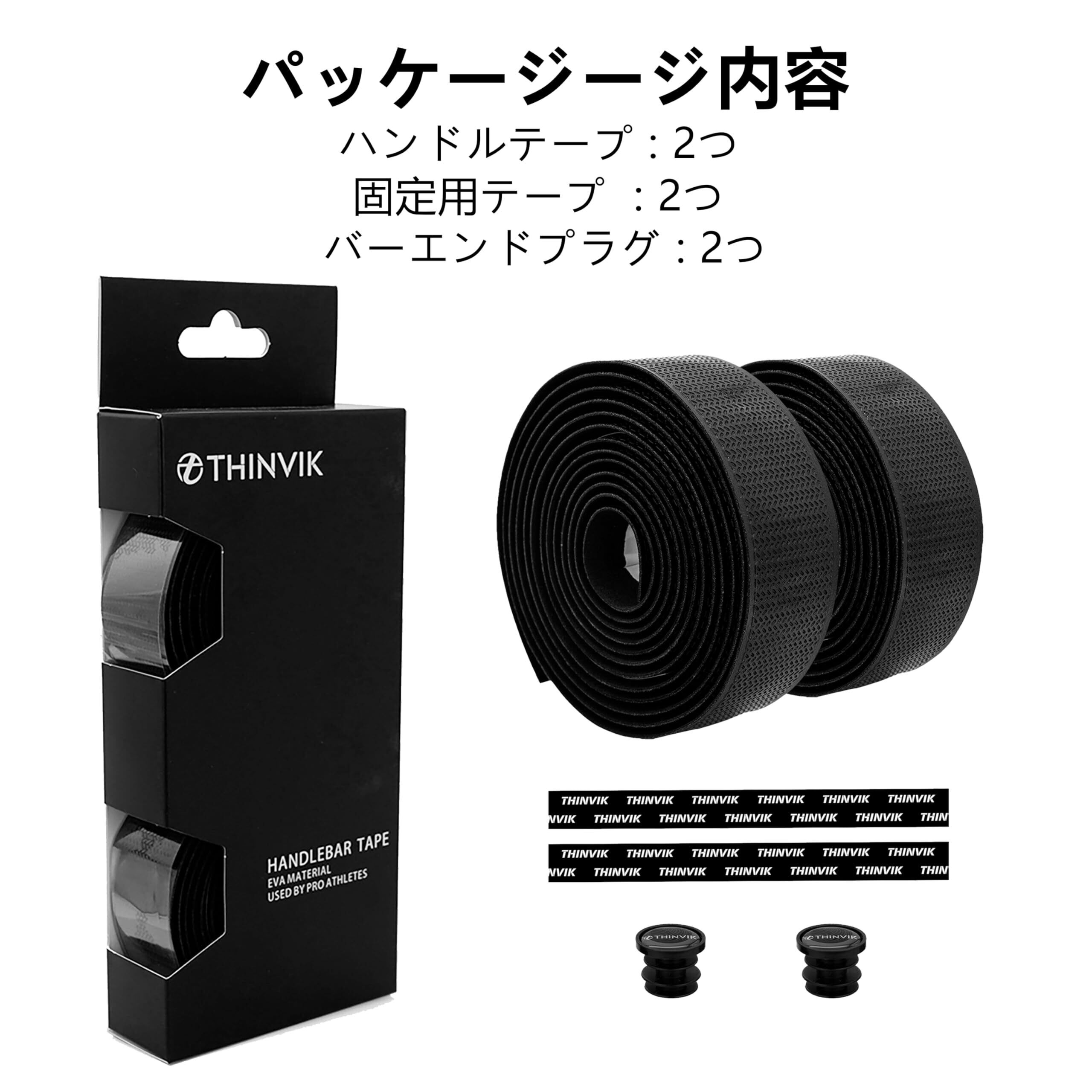 Thinvik リザードスキンズ 自転車 バーテープ 超軽量EVA+PU 自転車ハンドルテープ 滑り止め 吸汗性 快適グリップ グラベル&ロードバイク用 (2巻63g 厚さ2.8mm リザードスキン ブラック)