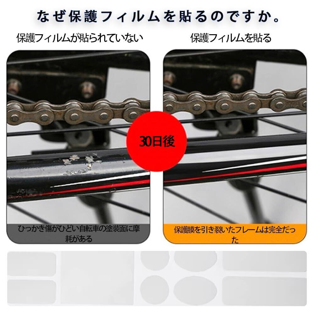 【高い保護効果】この保護フィルムは、バイクのフレーム、前フォーク、摩擦部分を効果的に保護します。特にチェーンやフレーム周りの傷や擦れを防ぎ、長期間の使用でも美しさを保ちます。