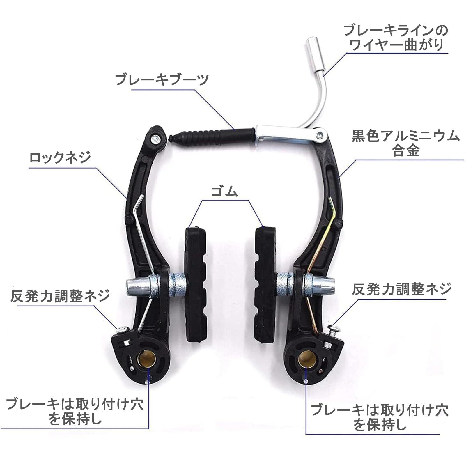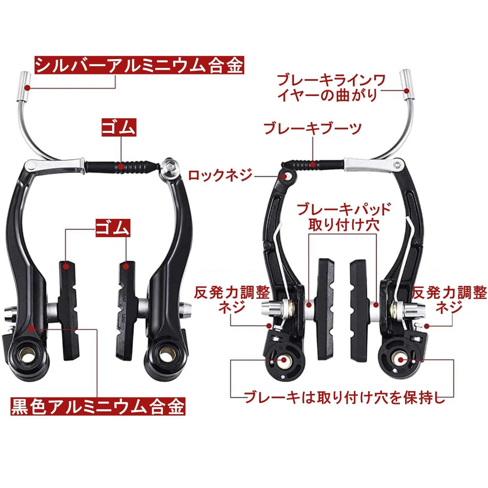 自転車Vブレーキセット 前後 簡単取り付け 調整可能なアームテンション 耐熱性 錆びにくい 修理部品アクセサリー アルミ合金素材