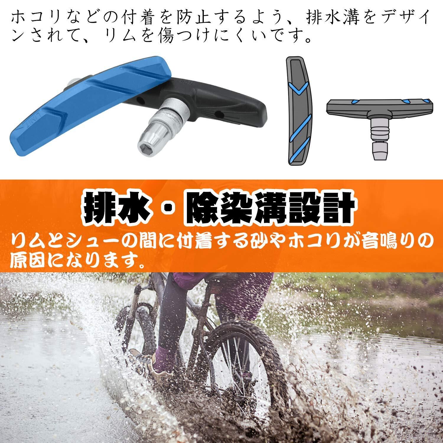 自転車ブレーキシュー Vタイプ ブレーキパッド 全天候型 Vブレーキ 消音 耐久 マウンテンバイク/ロードバイク用 70mm 左右分け設計 六角レンチ付き