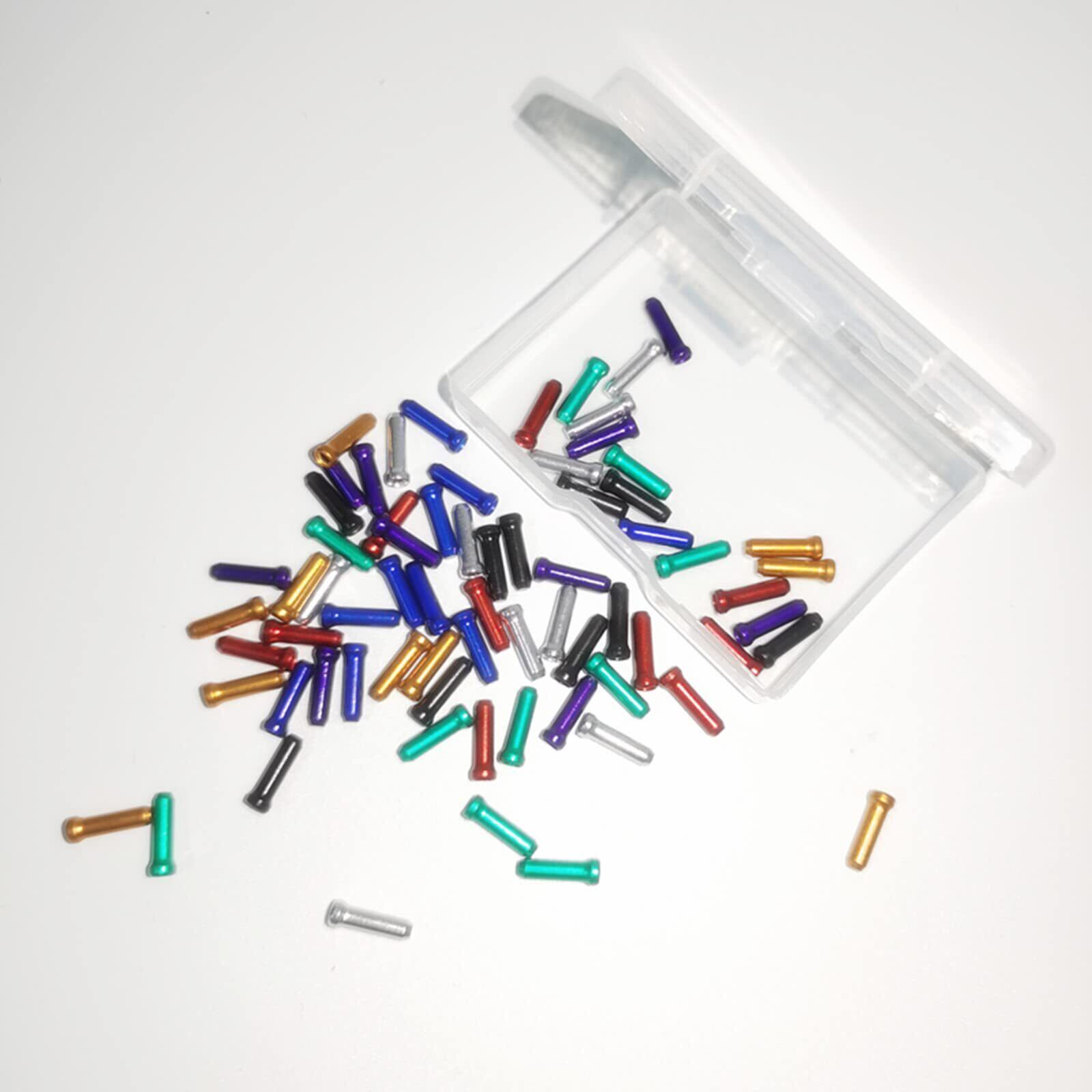 【十分な数量】これらのバイクケーブルエンドキャップは、黒、金、青、紫、緑、銀、赤の7つの魅力的な色があります。各色は10個あり、合計70個が小さなプラスチックの箱に保管されており、保管と使用が簡単です。