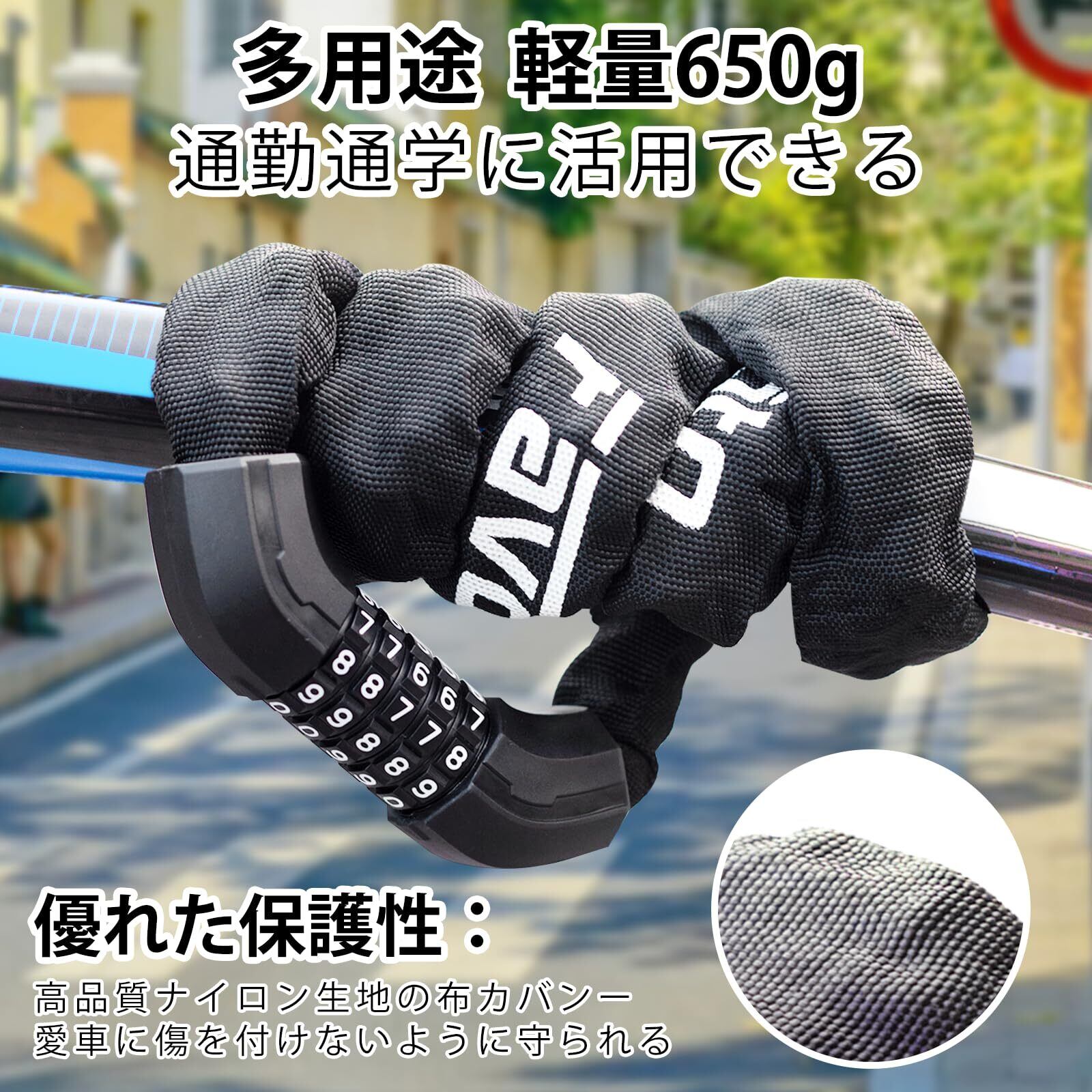 【高い強度】自転車チェーンロックのチェーンは高品質な材質を採用し、耐久性の高い専用カバーでチェーンを保護して優れた耐摩耗性、防錆性、切断抵抗を持っています。防犯性能は優れています。【サイズ】全長94cmです。