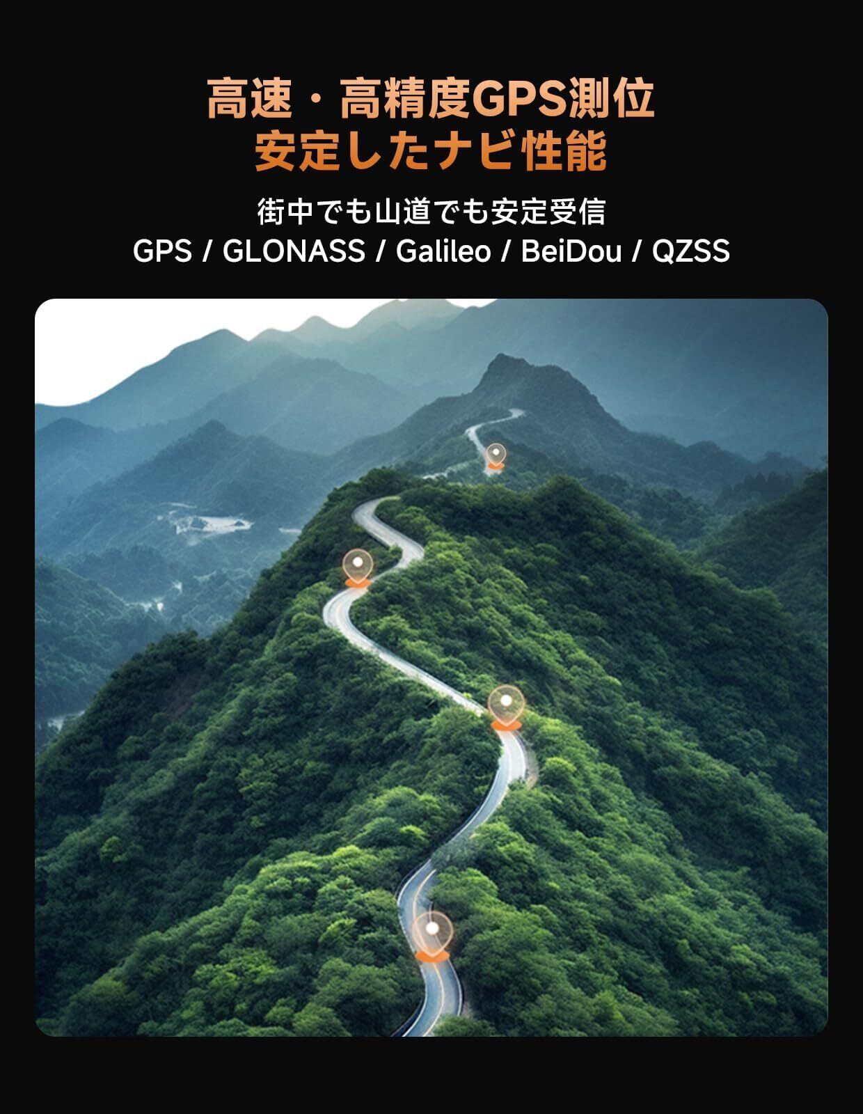 【高精度な走行ログを実現する自転車スピードメーター】デュアル周波数GNSSに対応した本製品は、ビル街や山間部などの受信環境が厳しい場所でも、衛星を素早く捕捉し、安定した高精度の走行ログを記録できる自転車スピードメーターです。トンネル通過時や高架下でも軌跡が乱れにくく、複雑なルートでも正確に走行ラインを再現します。