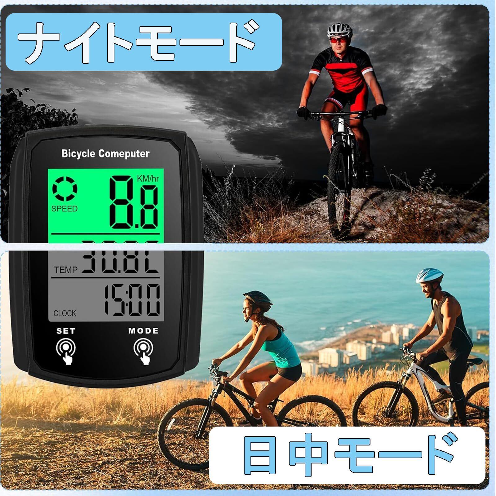 サイクルコンピュータ スピードメーター 多機能 大画面表示 防水 バックライト付き ワイヤードバイクコンピューター走行距離計