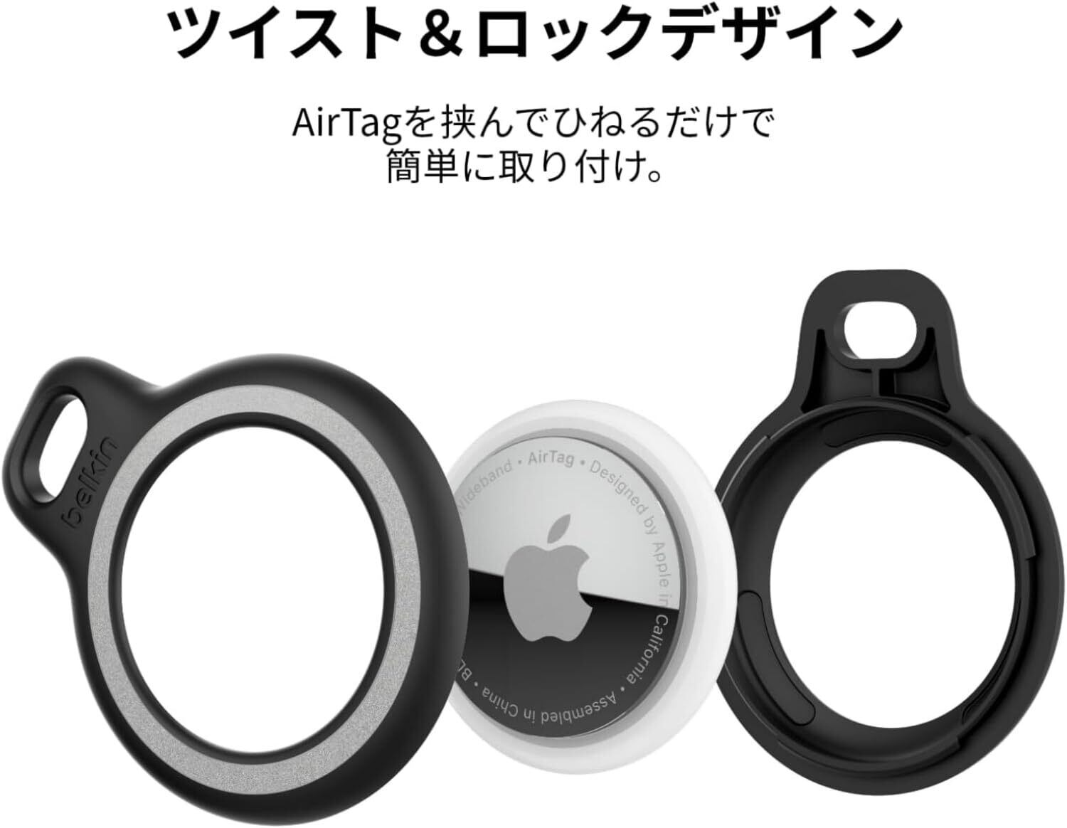 AirTagを挟んで捻るだけで簡単に取り付け可能な、ツイスト&ロックデザインを採用