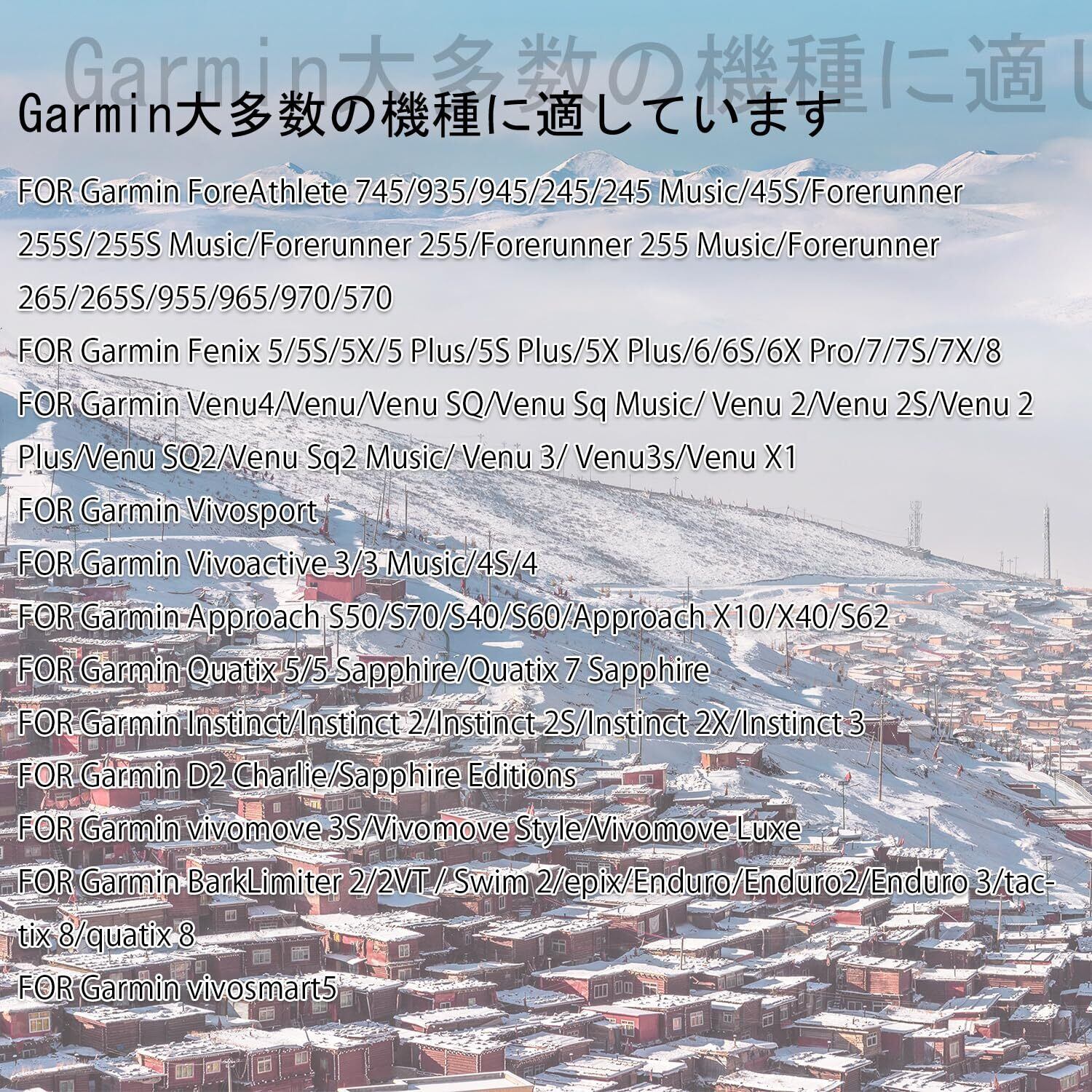 【対応機種】汎用Garmin Approach S50/ S70/tactix 8/Instinct 3/Forerunner 970/570/165/265/265S/255S/255S Music/255/255 Music/955/965/ForeAthlete 745/935/945/245/245 Music/45S/Fenix 5/5S/5X/5 Plus/5S Plus/5X Plus/6/6S/6X Pro/7/7S/7X/8/Venu 4/SQ/Sq Music/ 3/X1/2/2S/2 Plus/Vivoactive 3/3 Music/4S/4/Approach S40/S60/X10/X40/S62/Quatix 5/5 Sapphire/Instinct/Instinct 2/Instinct 2S/2X/D2 Charlie/Sapphire Editions/vivomove 3S/Style/Vivomove Luxe/BarkLimiter 2/2VT / Swim 2/epix/Enduro/2/3/quatix 8